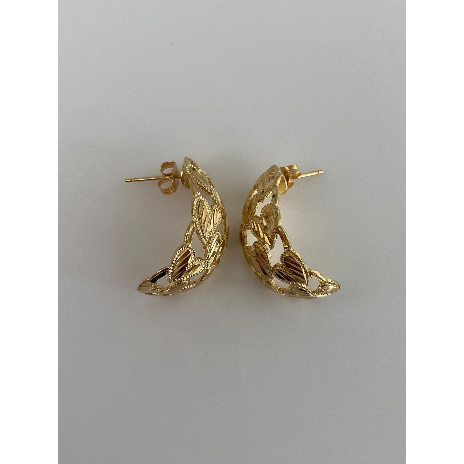 Vintage Solid 18k Yellow Gold Diamond Cut Hearts Openwork Drop Earrings
