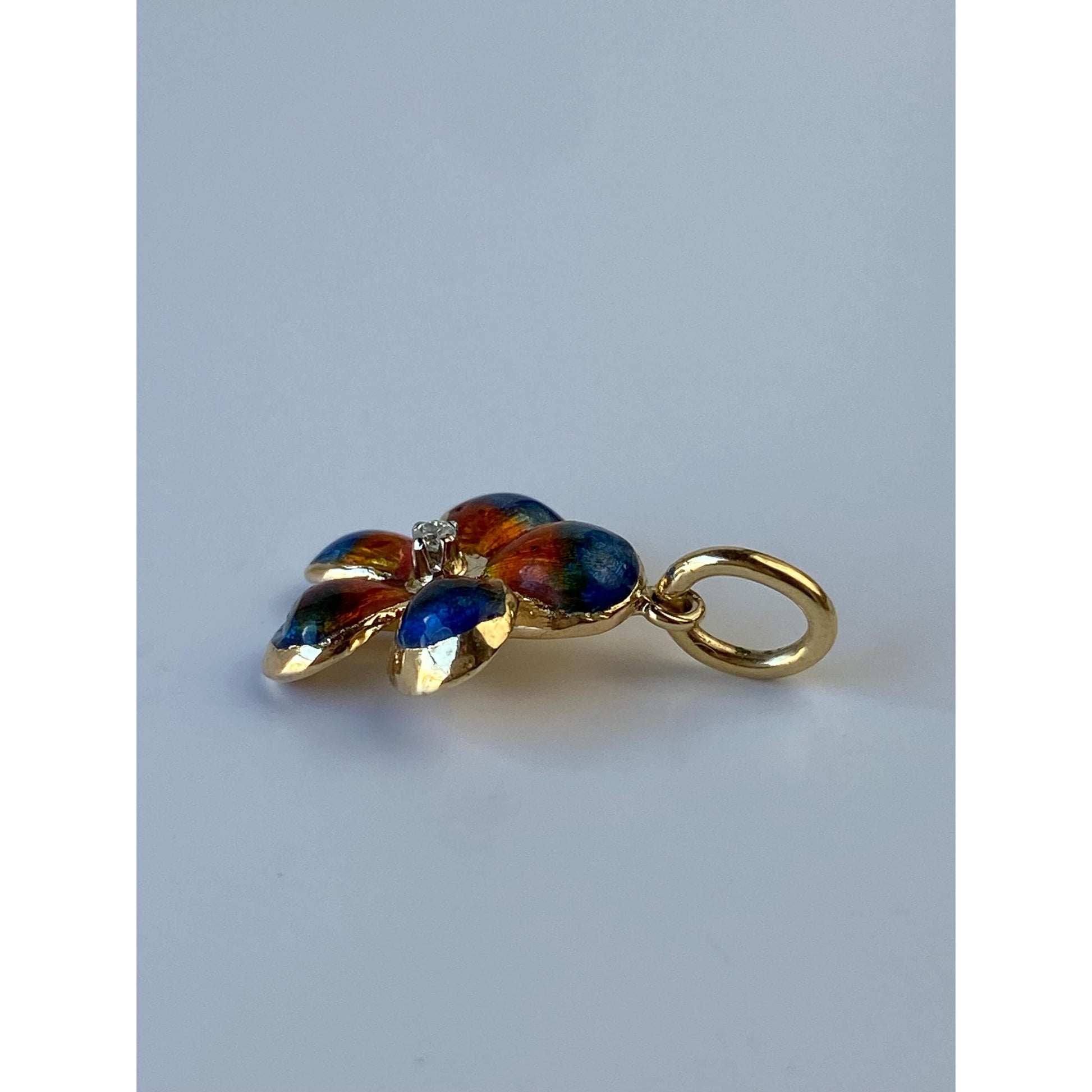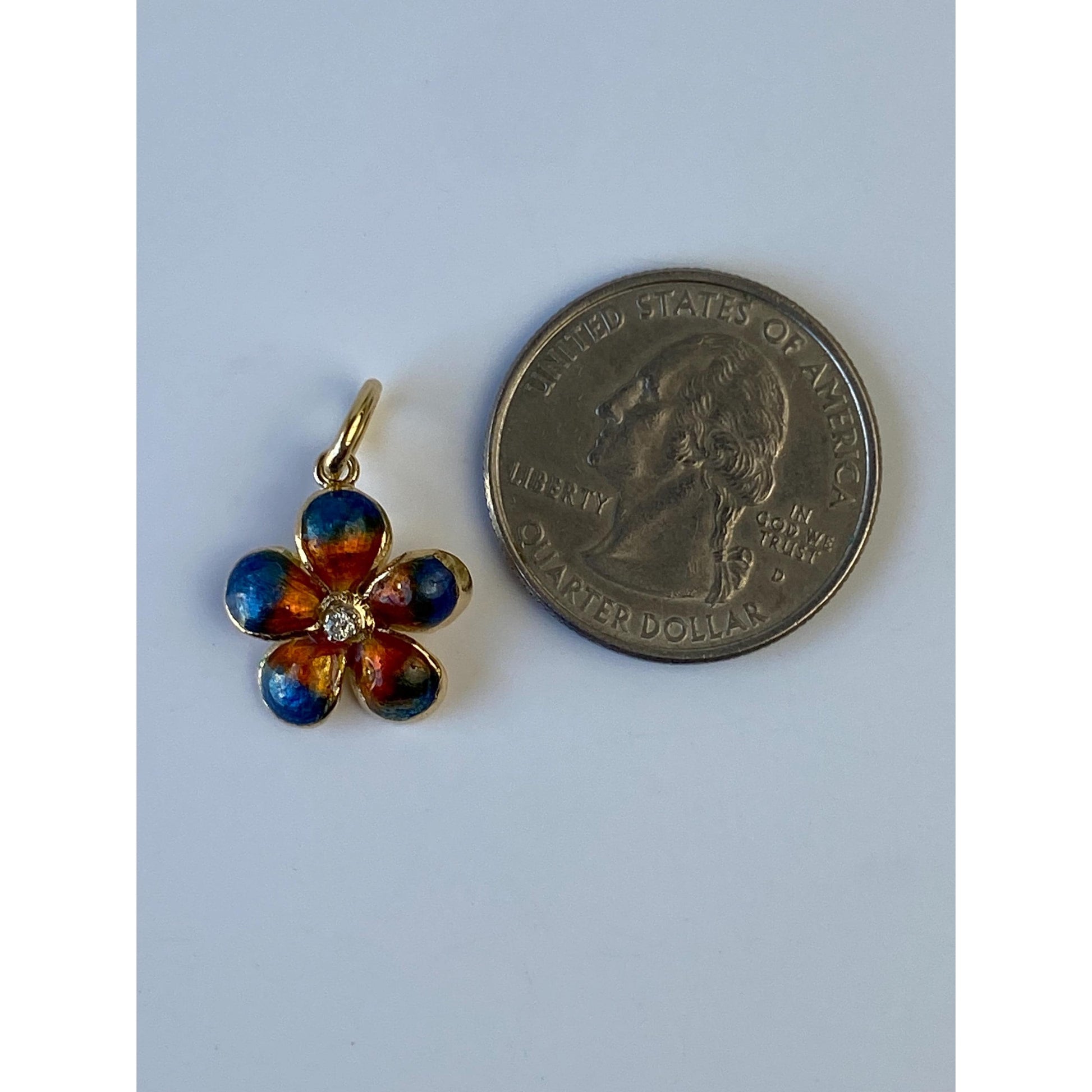 Vintage Solid 18k Yellow Gold Diamond Enamel Flower Charm
