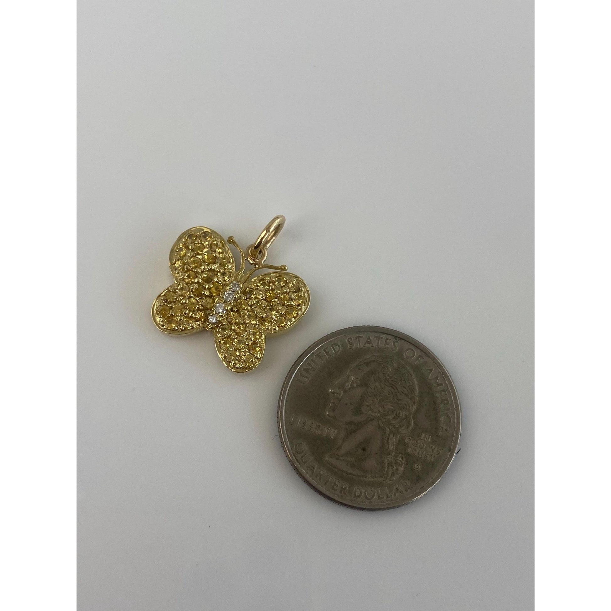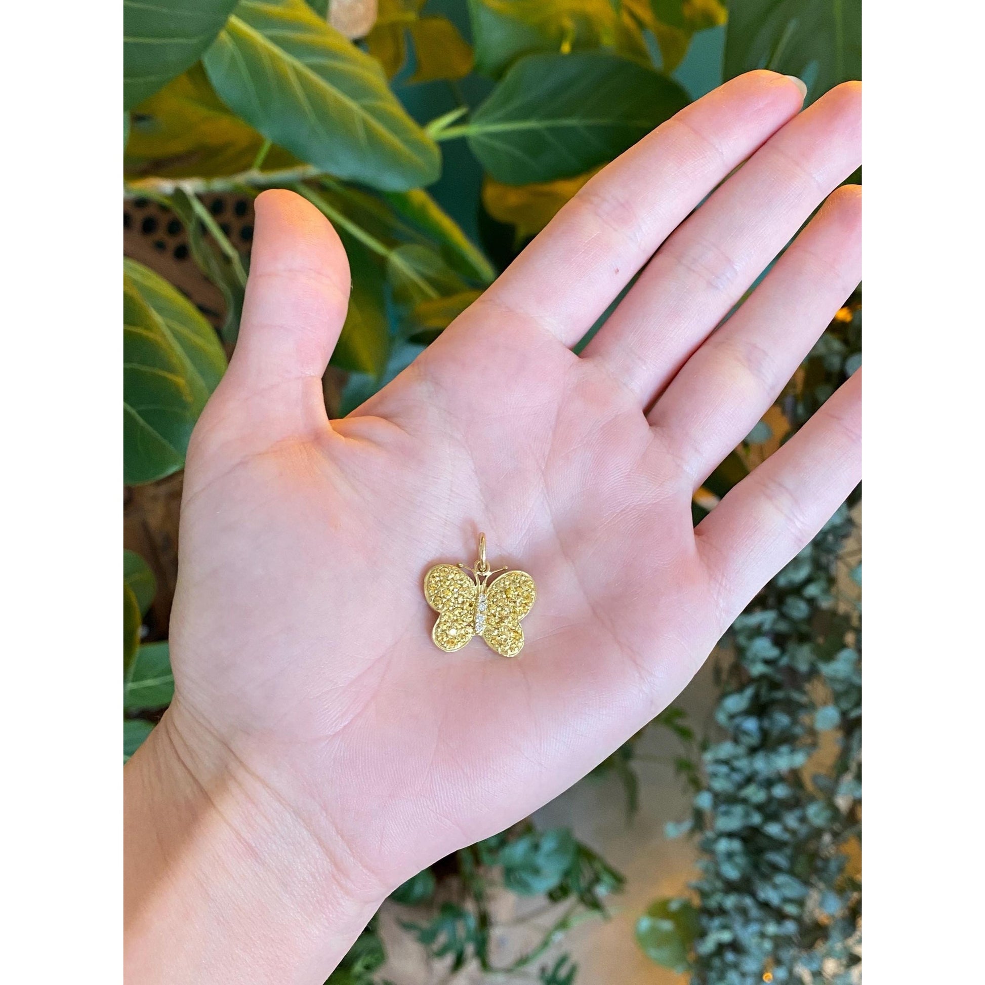 Vintage Solid 18k Yellow Gold Diamond Yellow Topaz Butterfly Charm