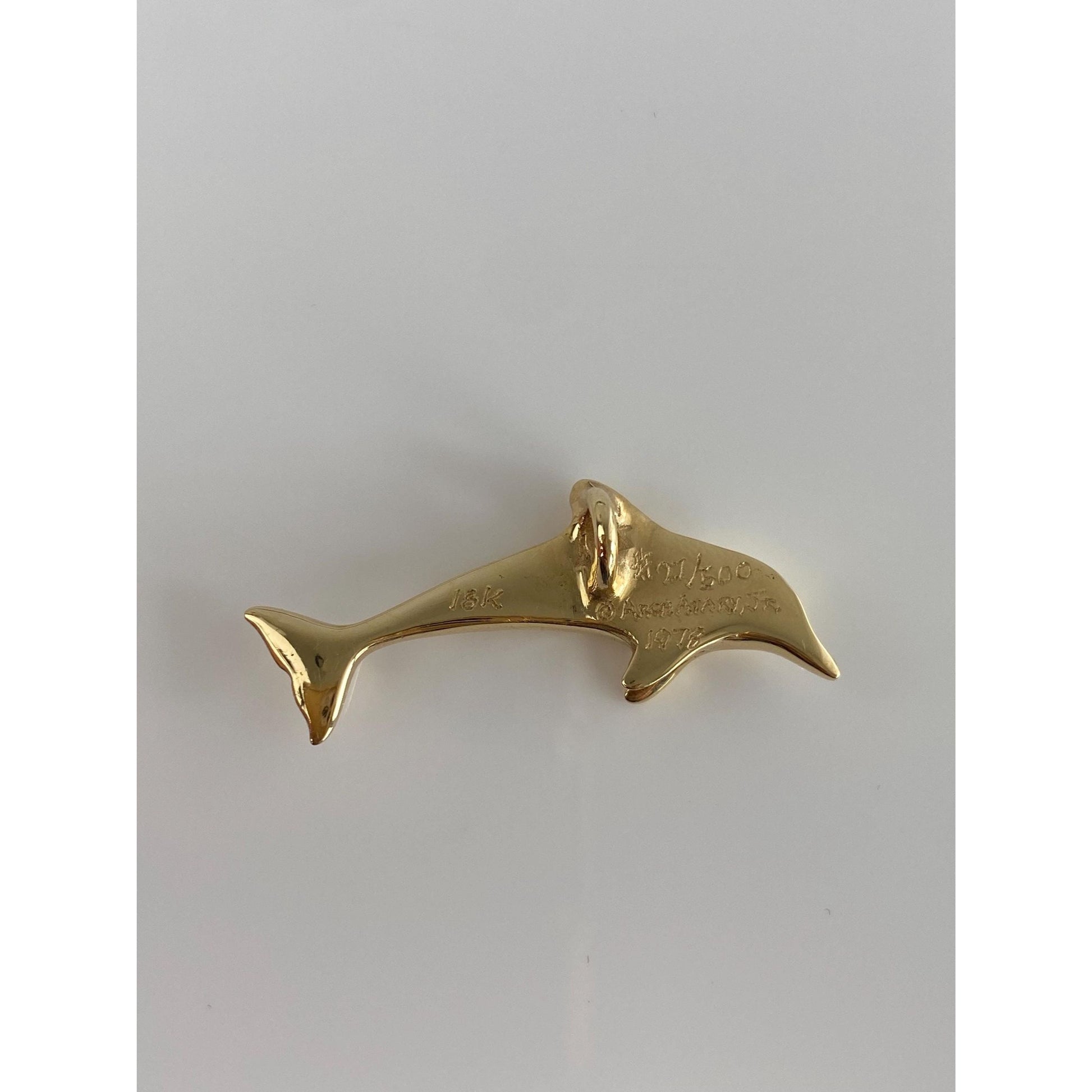 Vintage Solid 18k Yellow Gold Dolphin Slide Charm