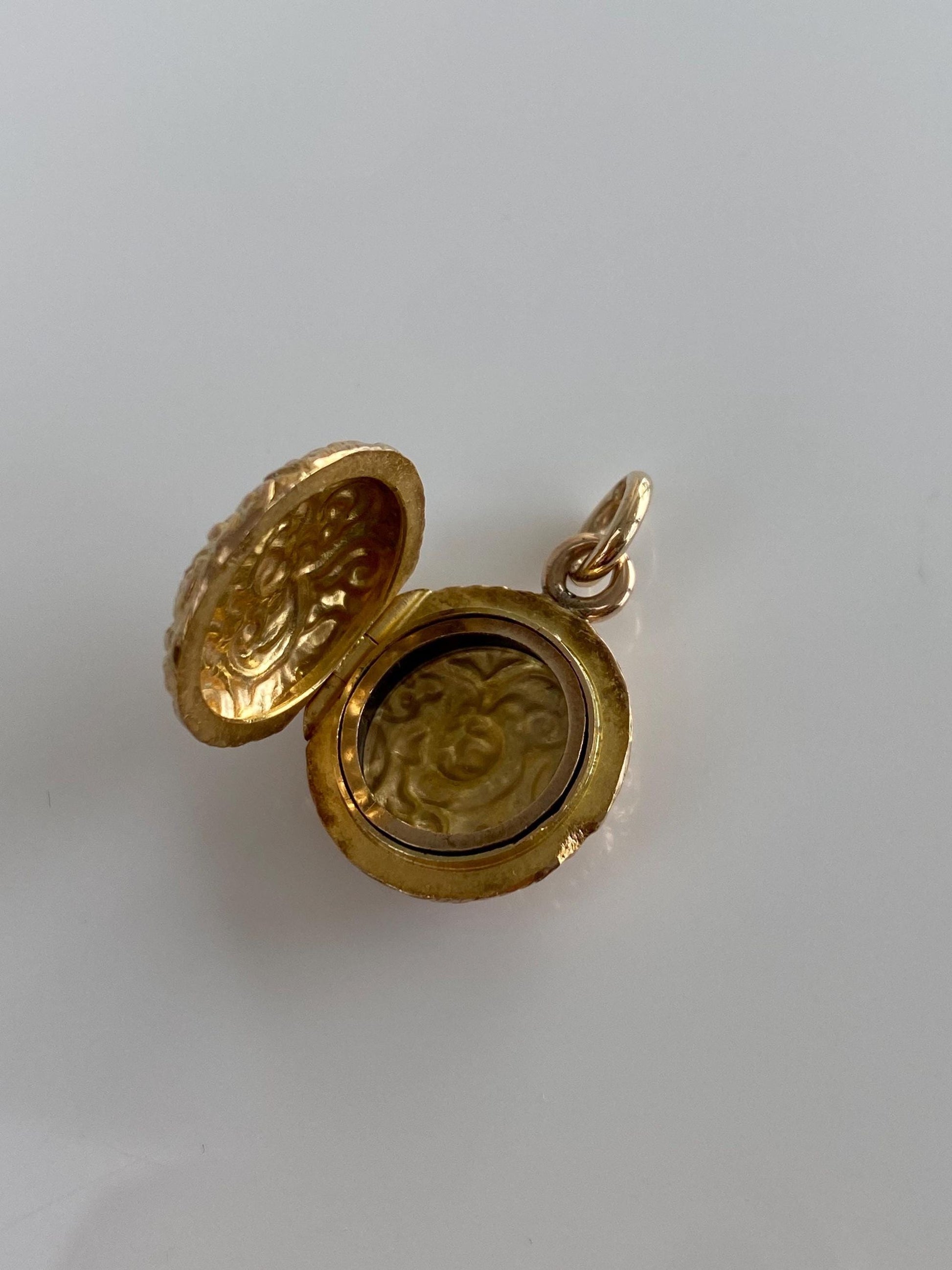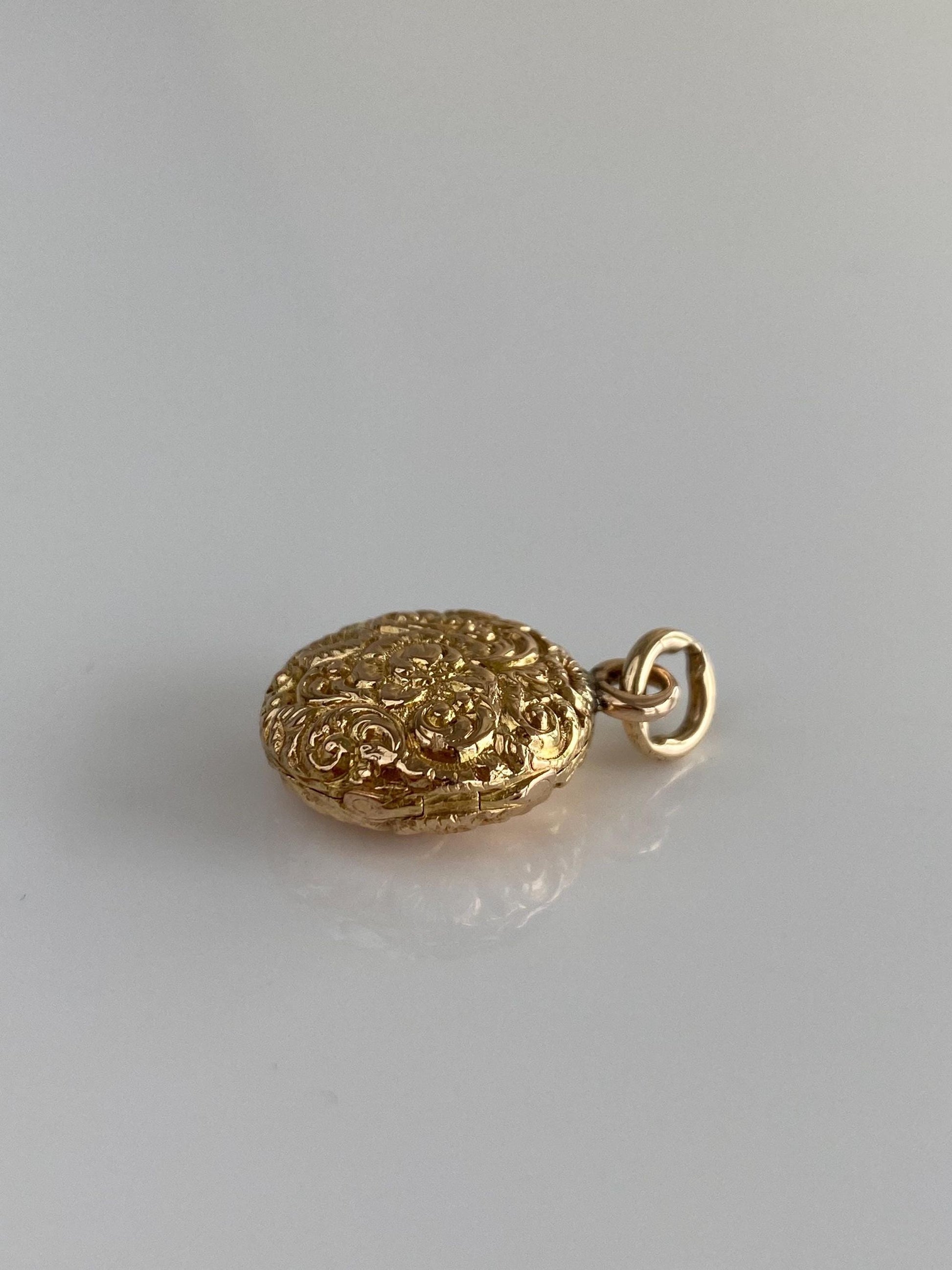 Vintage Solid 18k Yellow Gold Embossed Design Locket Charm