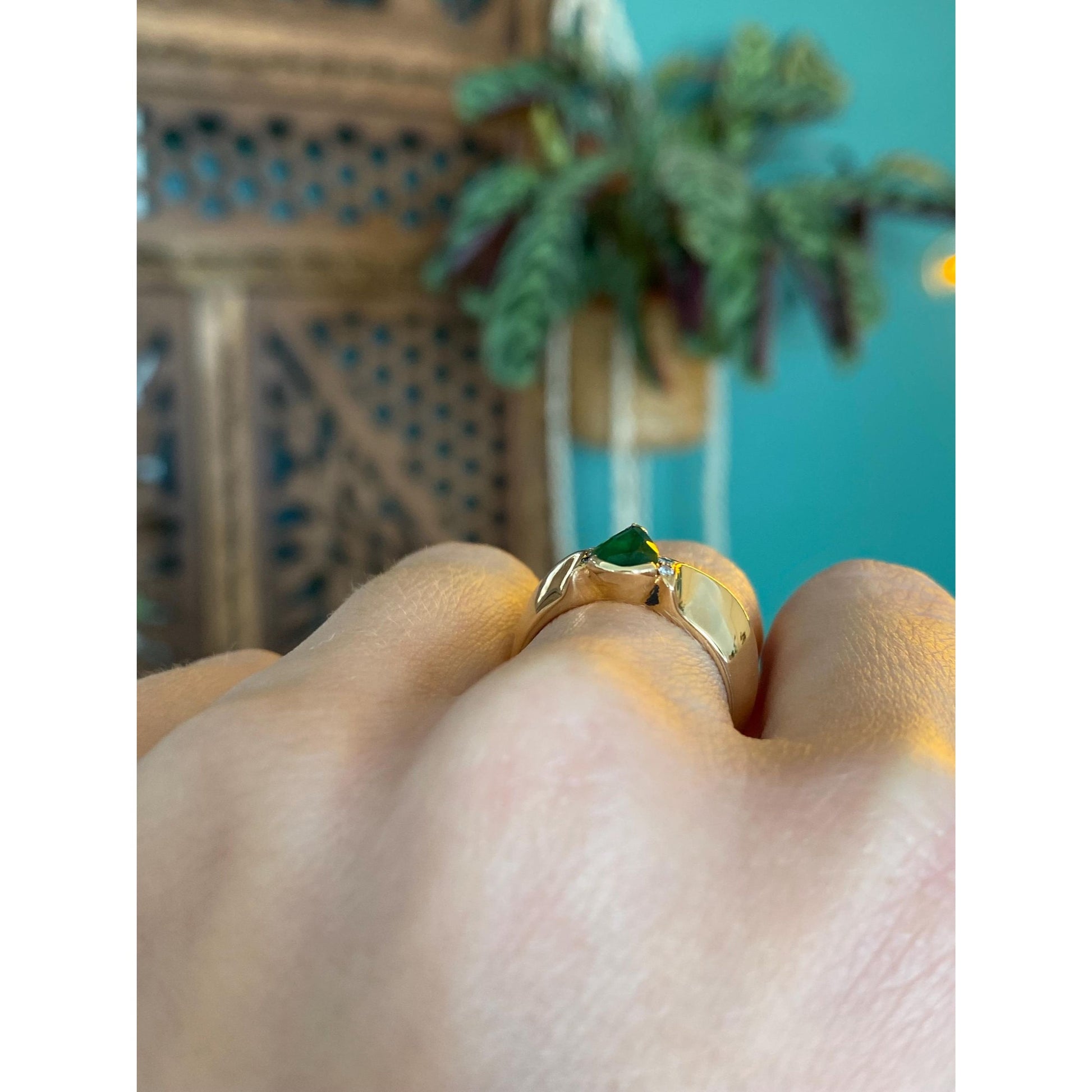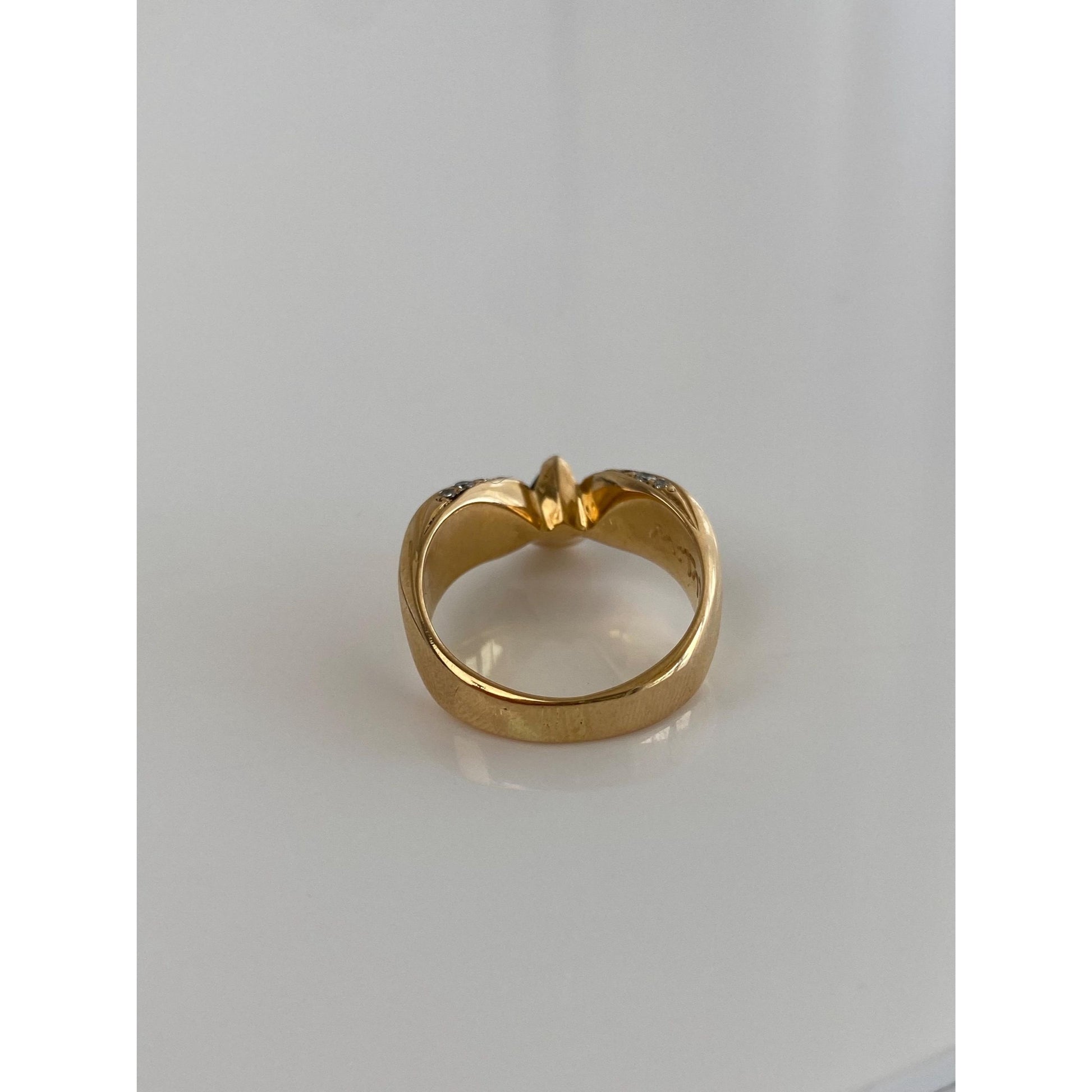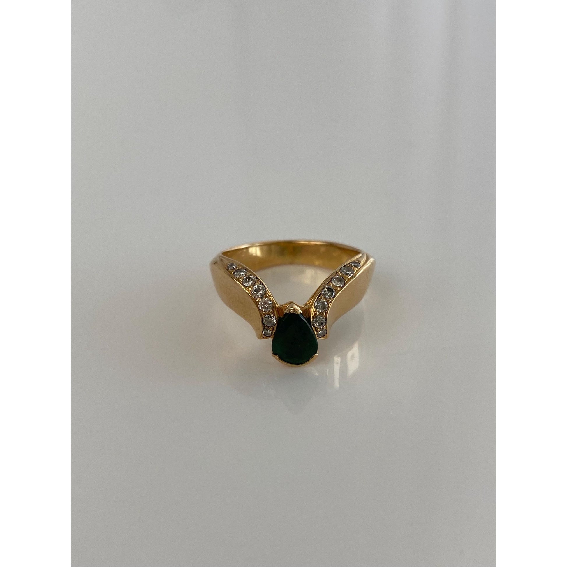 Vintage Solid 18k Yellow Gold Emerald & Diamond Ring Band - Size 6.25