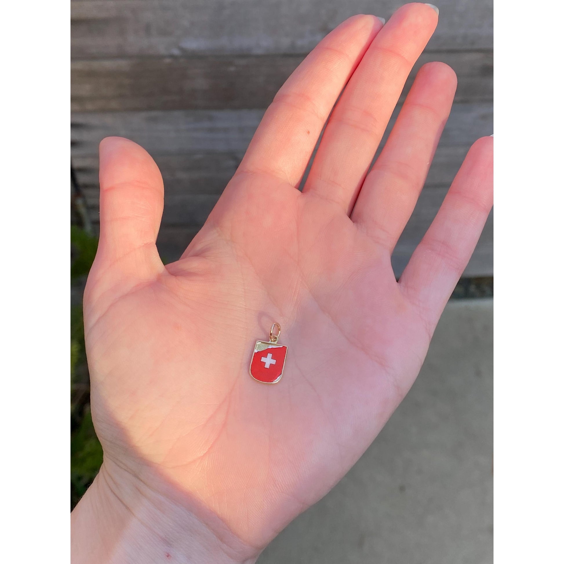 Vintage Solid 18k Yellow Gold Enamel Swiss Flag Charm