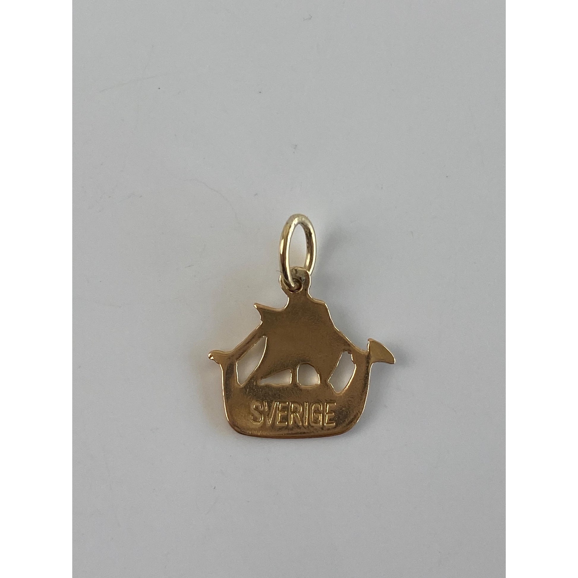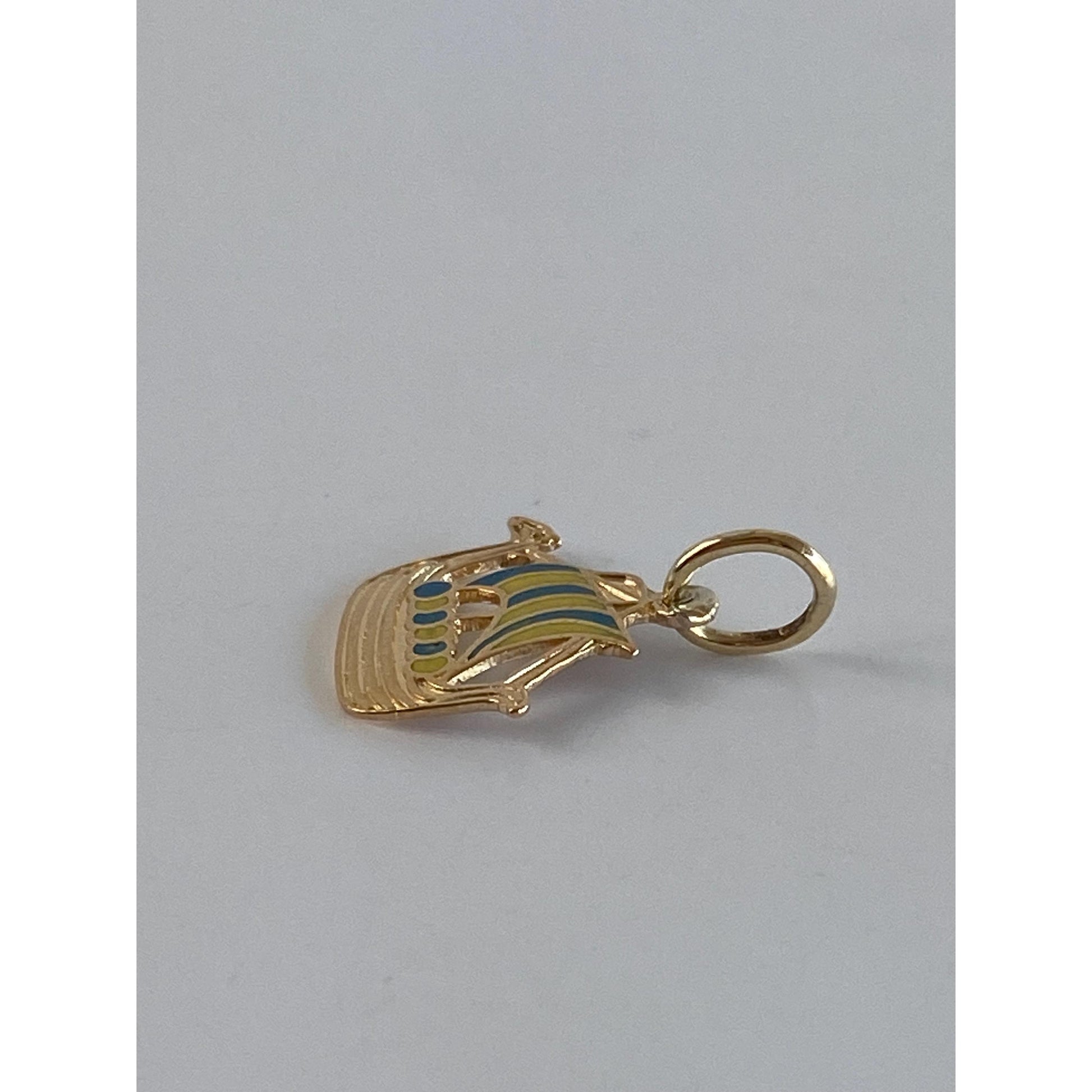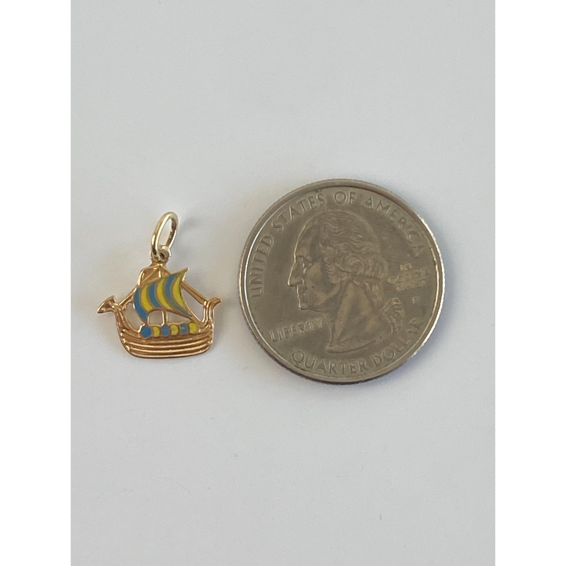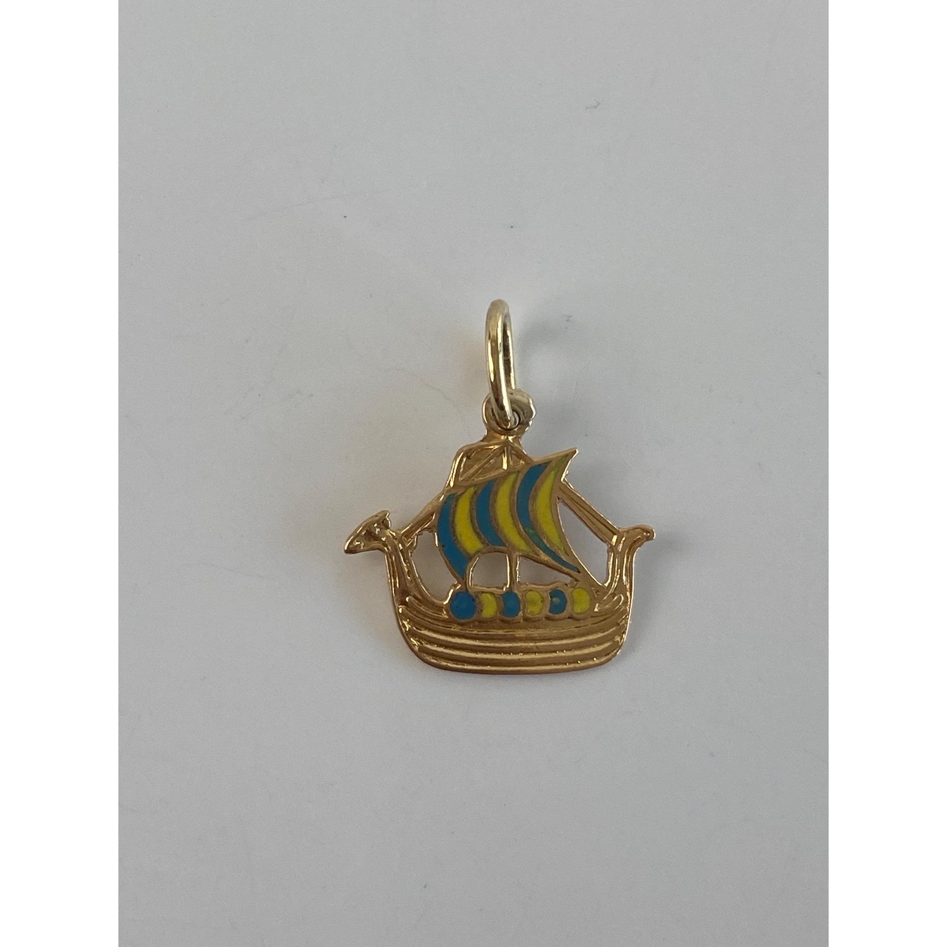 Vintage Solid 18k Yellow Gold Enamel Viking Ship Charm