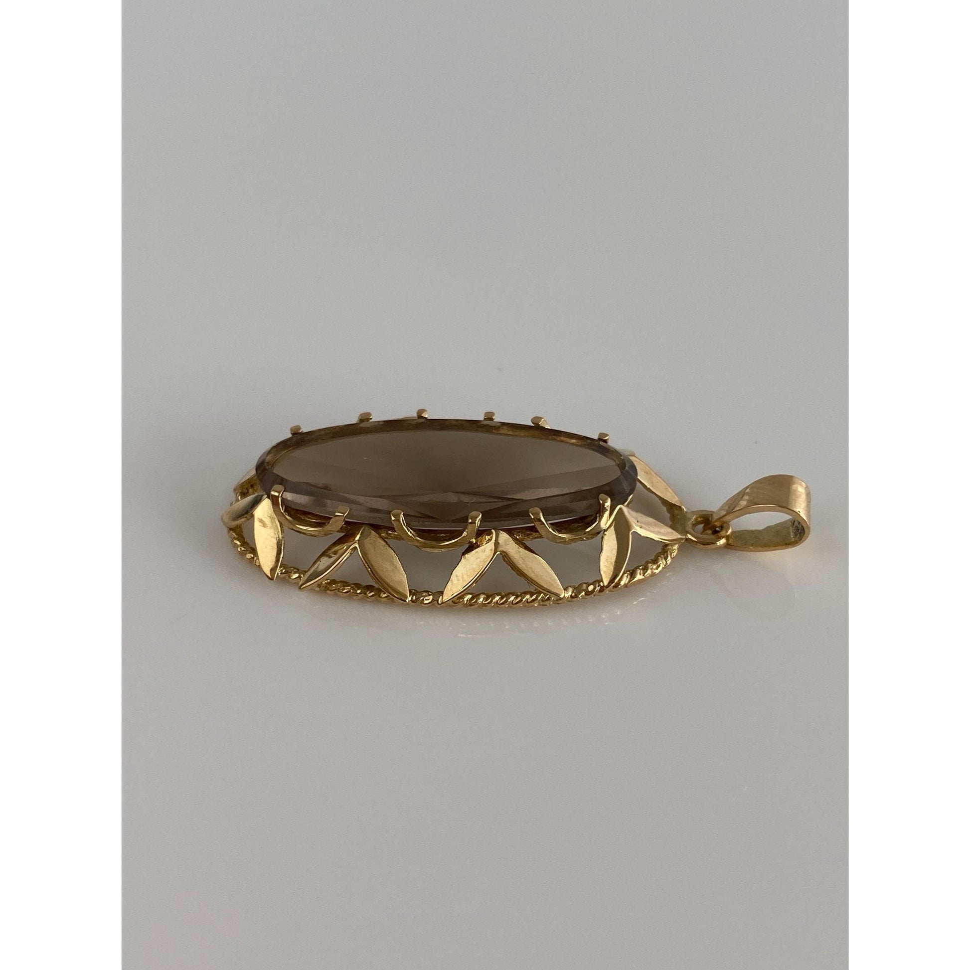 Vintage Solid 18k Yellow Gold Fancy Cut Smokey Quartz Charm