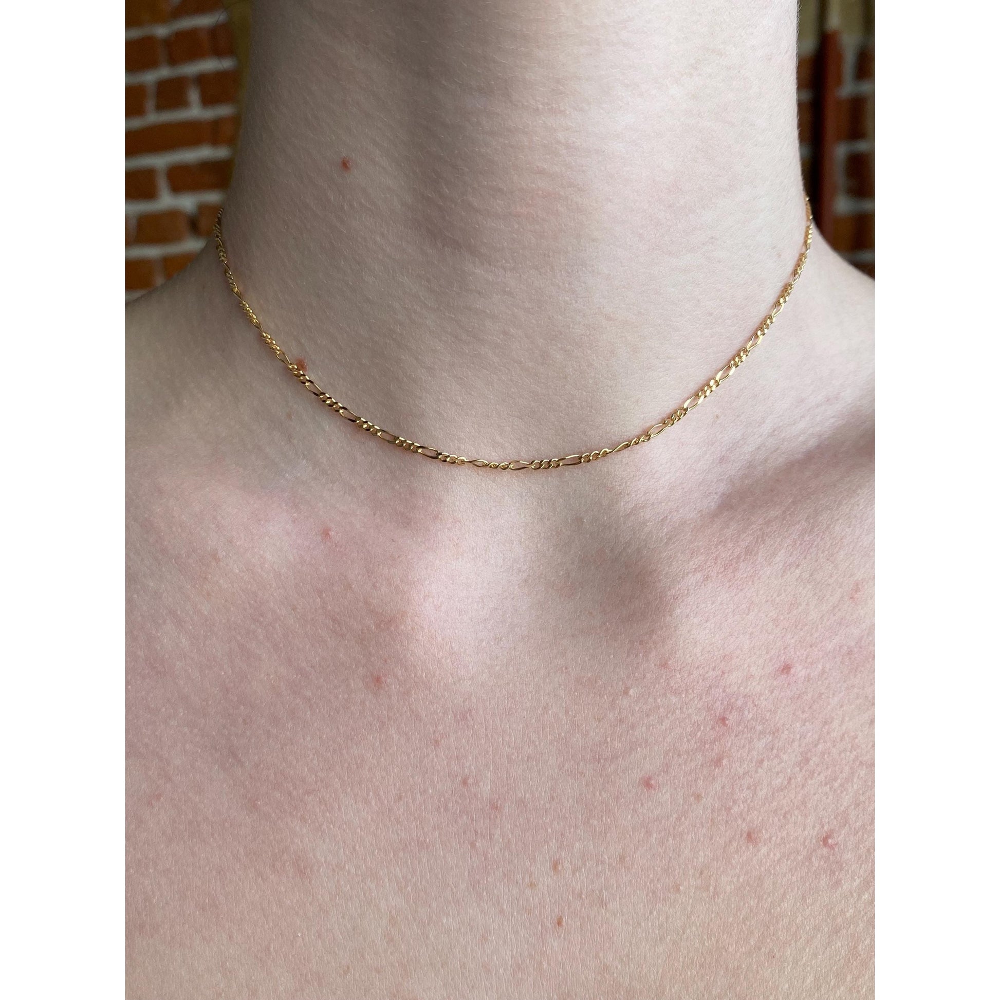 Vintage Solid 18k Yellow Gold Figaro Chain Necklace - 13.75 inches