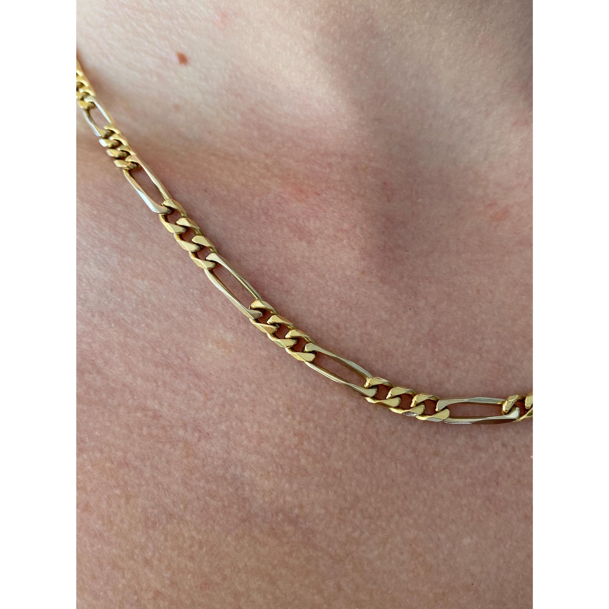 Vintage Solid 18k Yellow Gold Figaro Chain Necklace - 18 inches