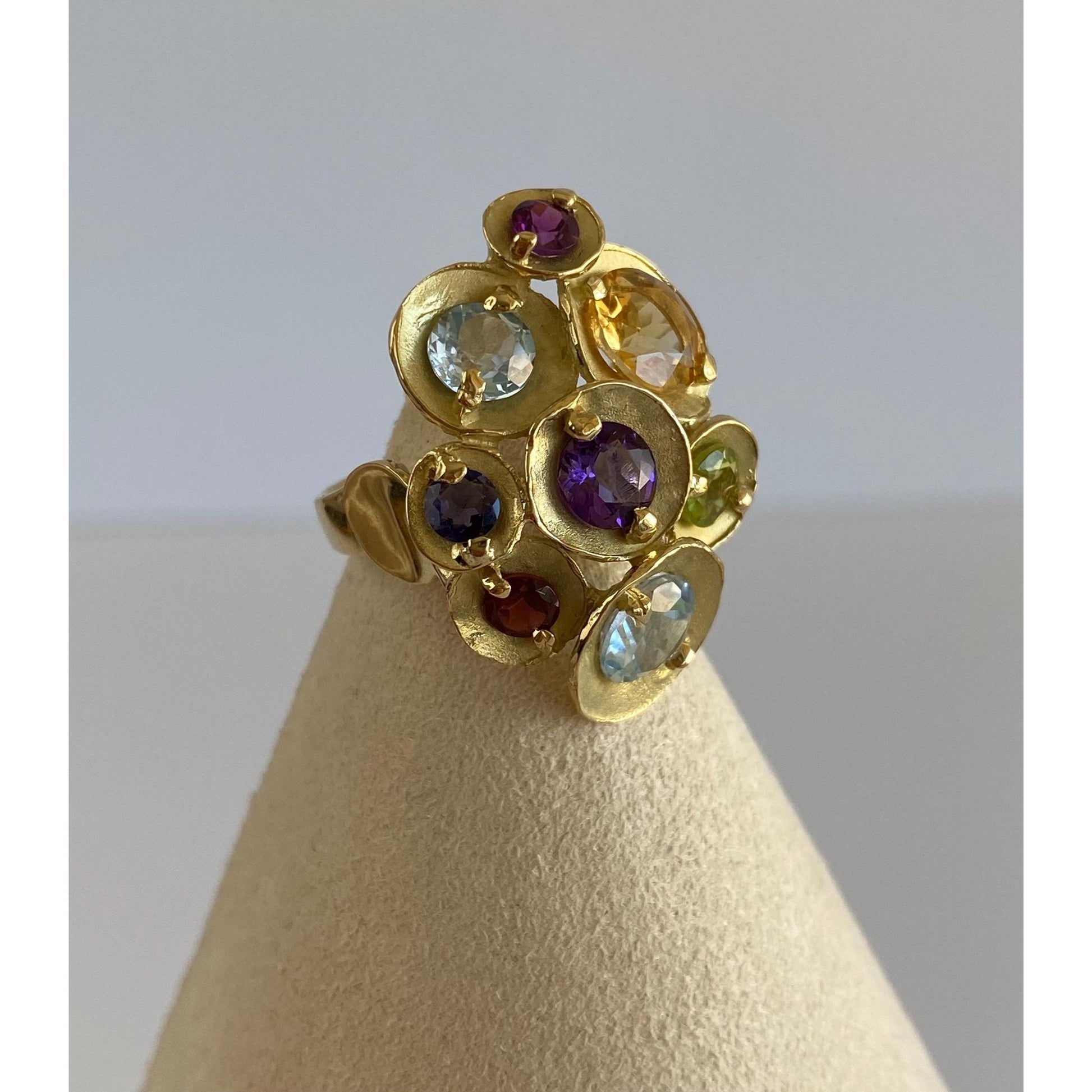 Vintage Solid 18k Yellow Gold Garnet Citrine Peridot Topaz Amethyst Ring - Size 6.5