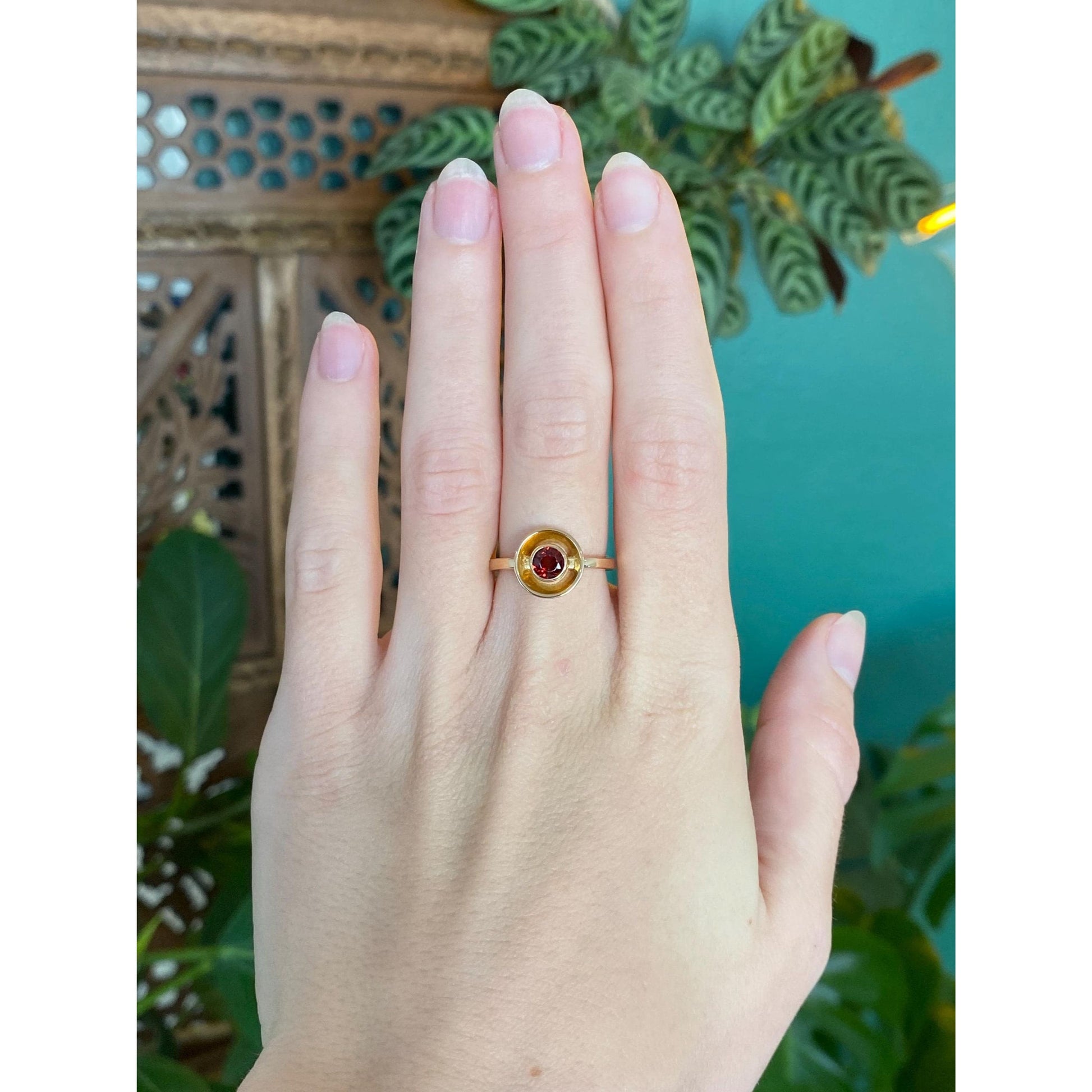 Vintage Solid 18k Yellow Gold Garnet Ring - Size 6.25