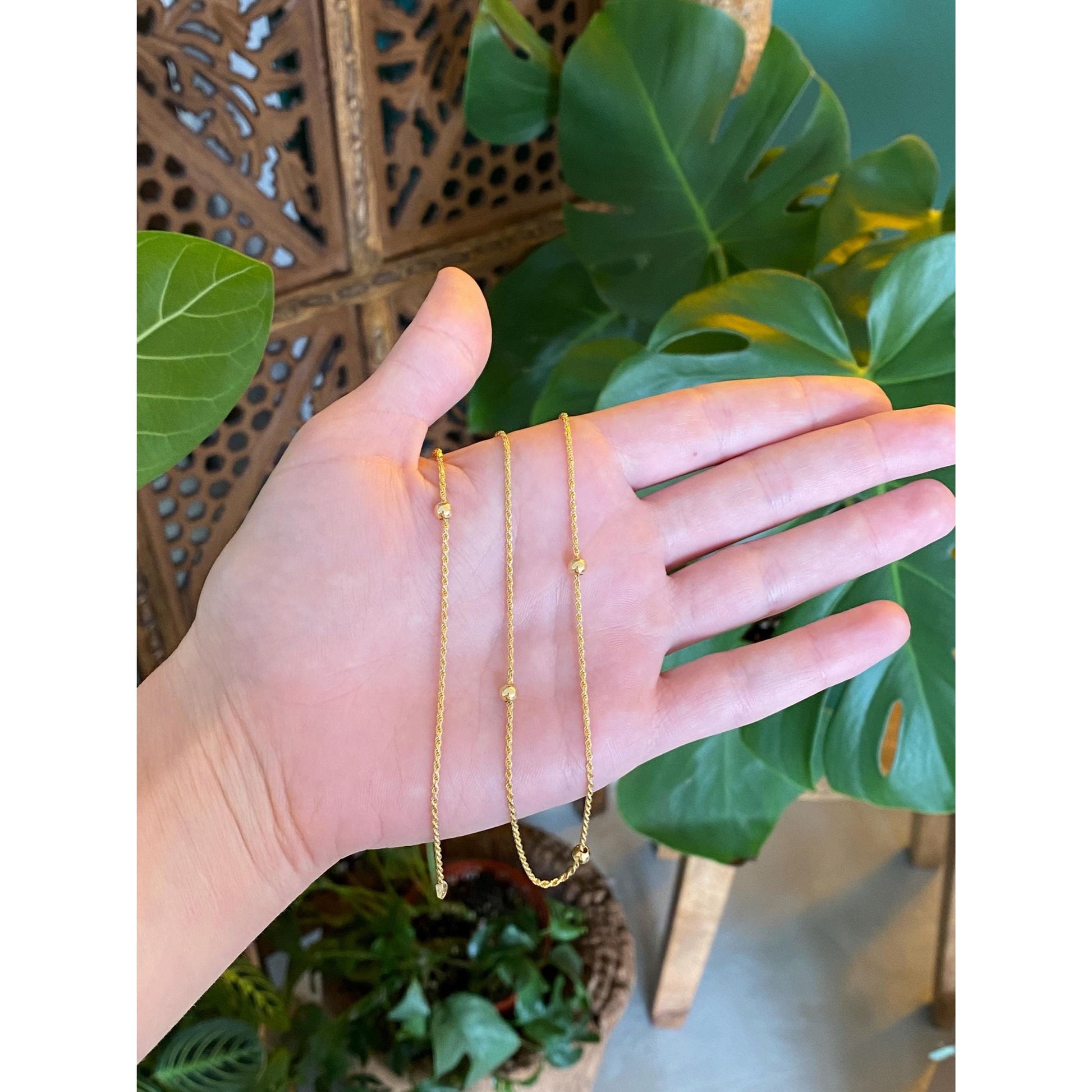 Vintage Solid 18k Yellow Gold Gold Ball Dainty Rope Chain Necklace - 23.75 inches