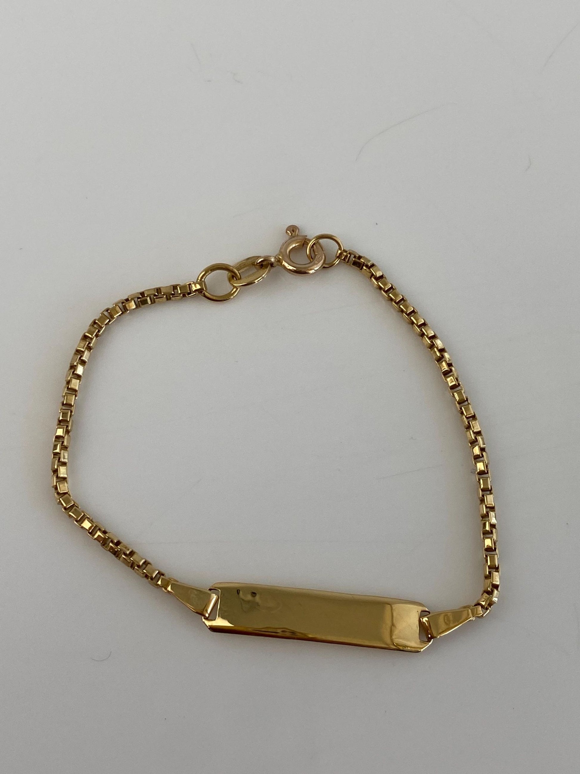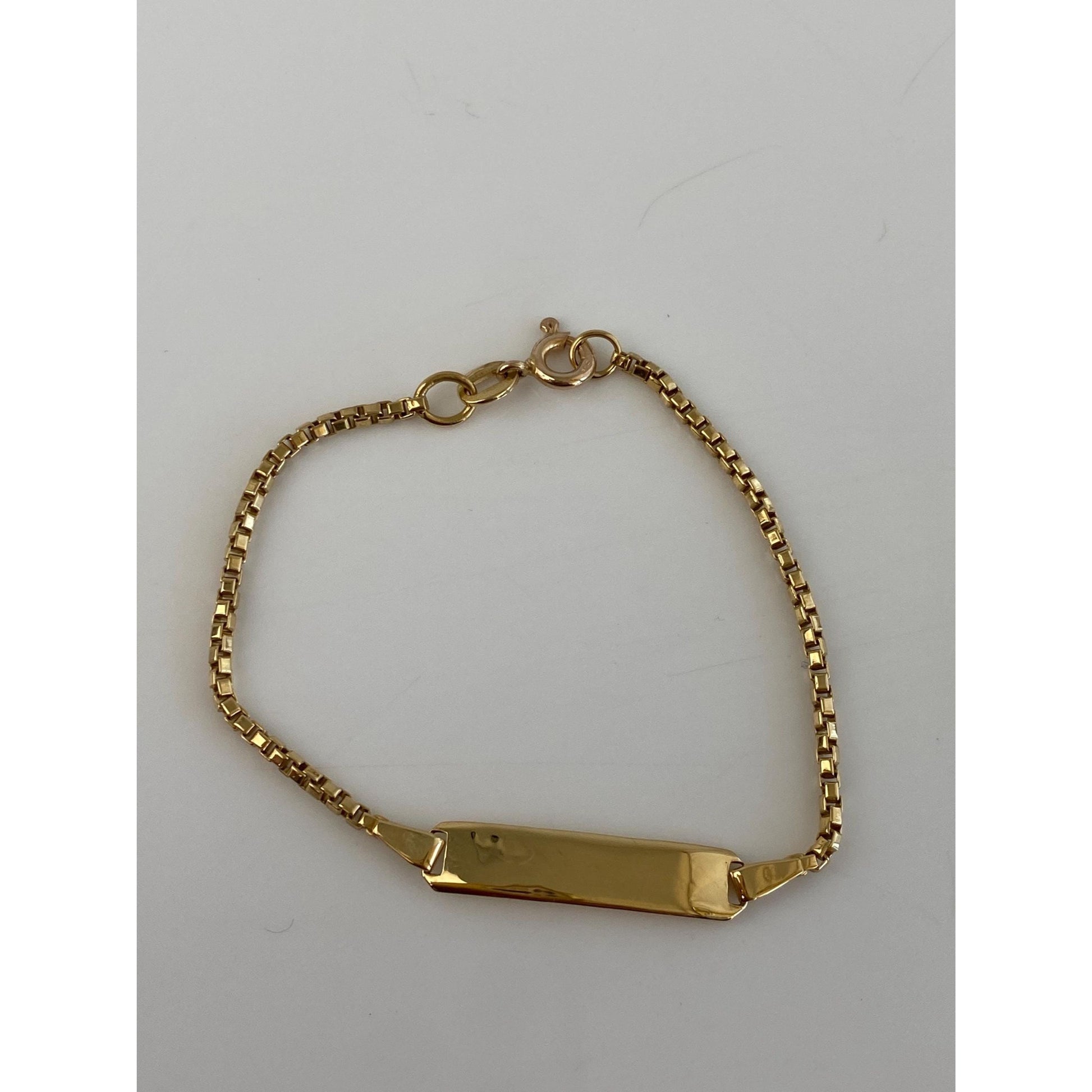 Vintage Solid 18k Yellow Gold ID Box Chain Baby Bracelet - 5.25 inches