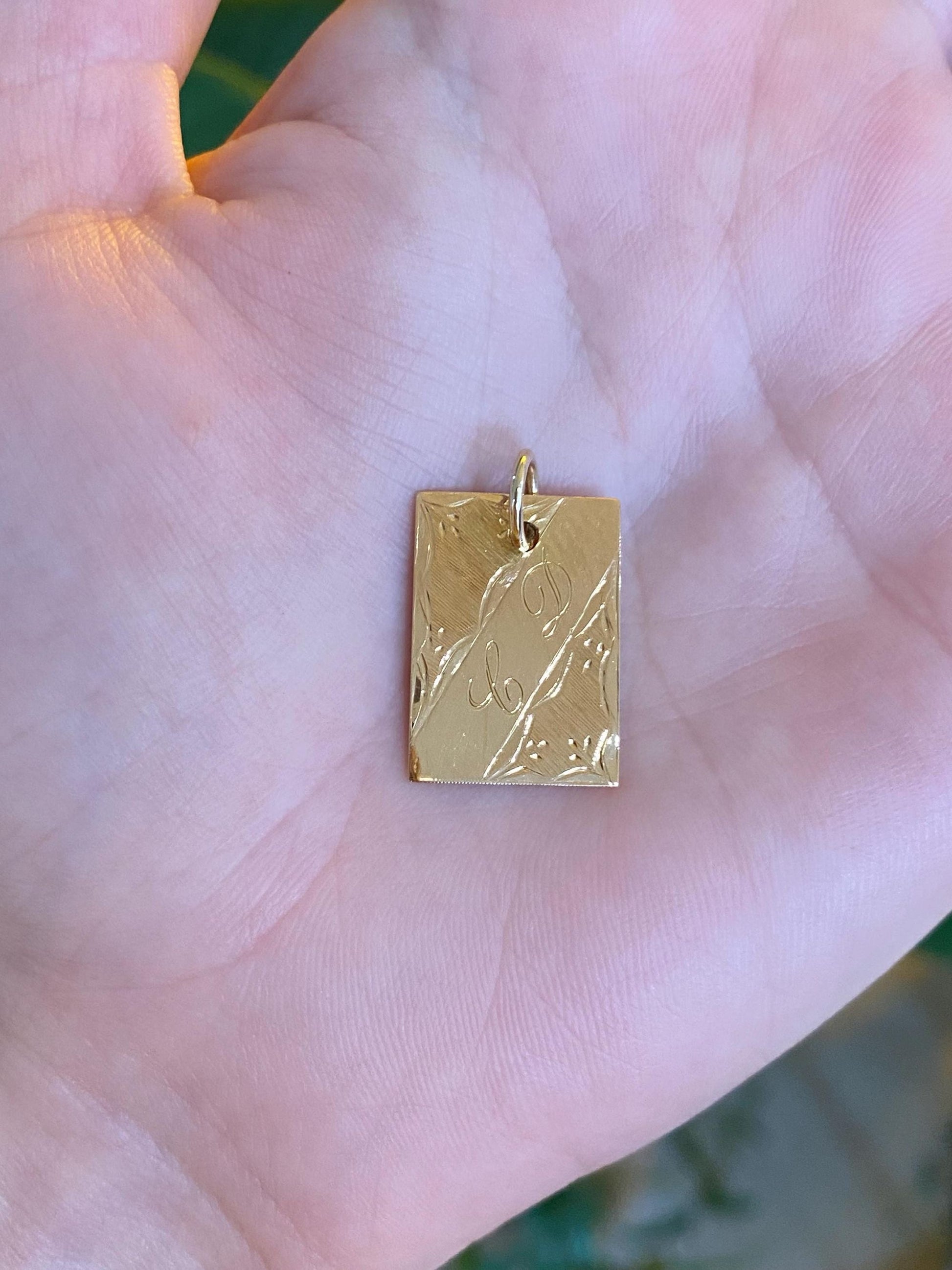 Vintage Solid 18k Yellow Gold Initials 'CD' Engraved Charm