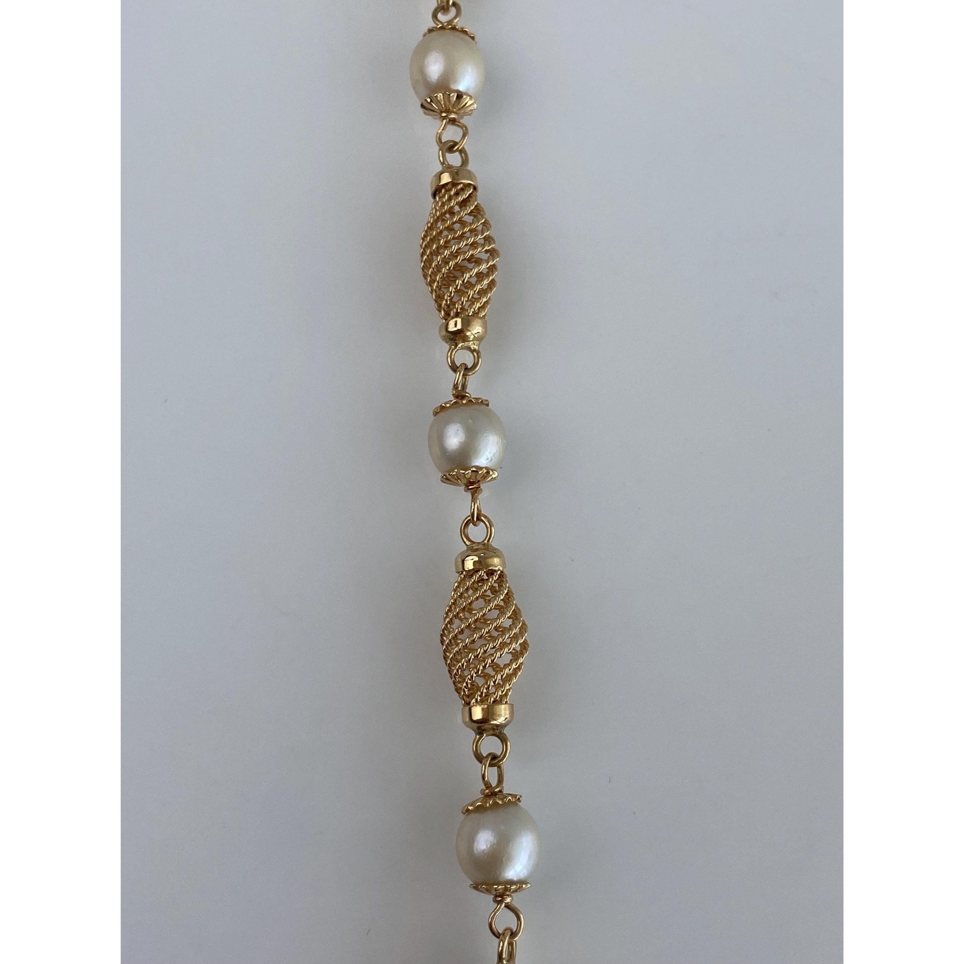 Vintage Solid 18k Yellow Gold Pearl Rope Twist Link Bracelet - 7.5 inches