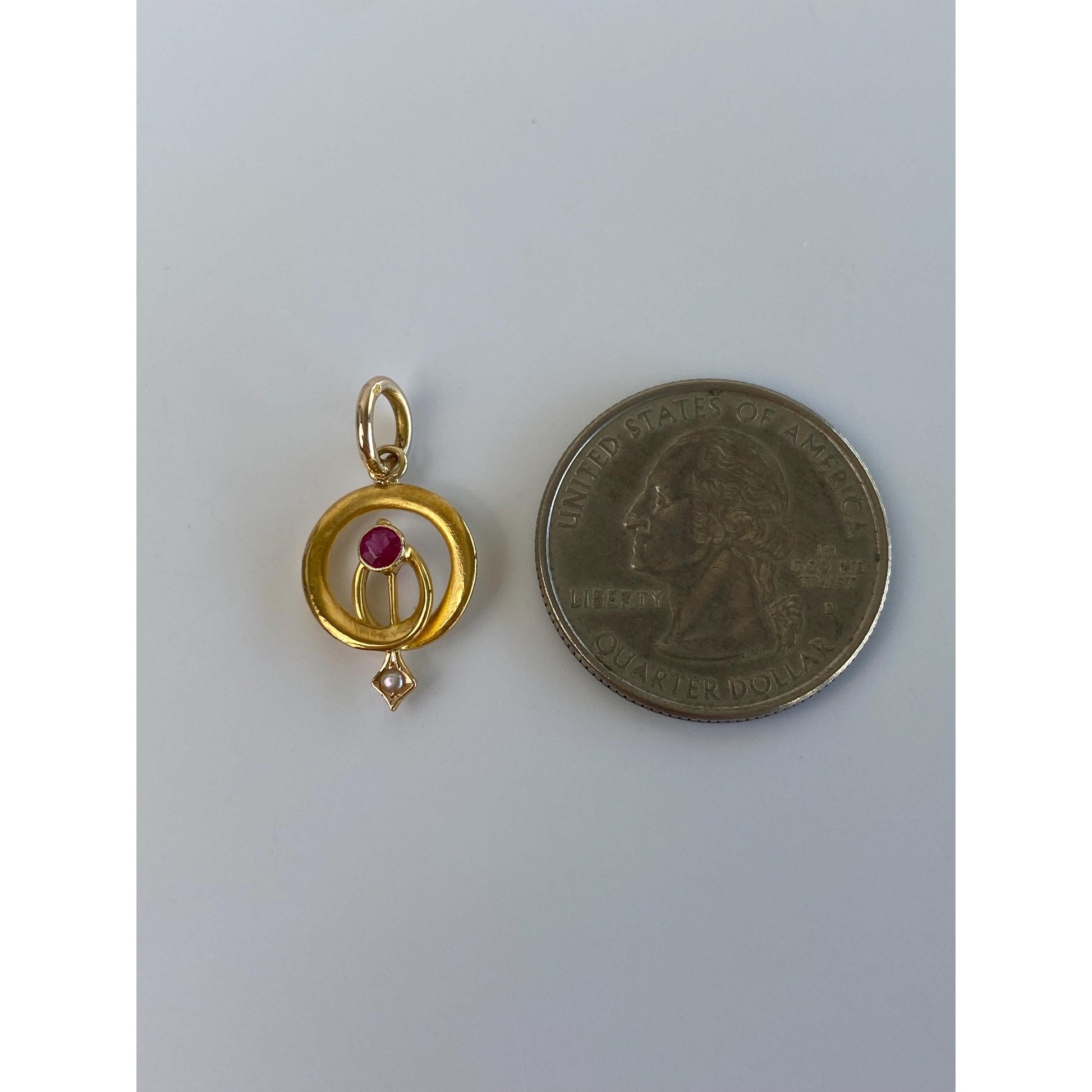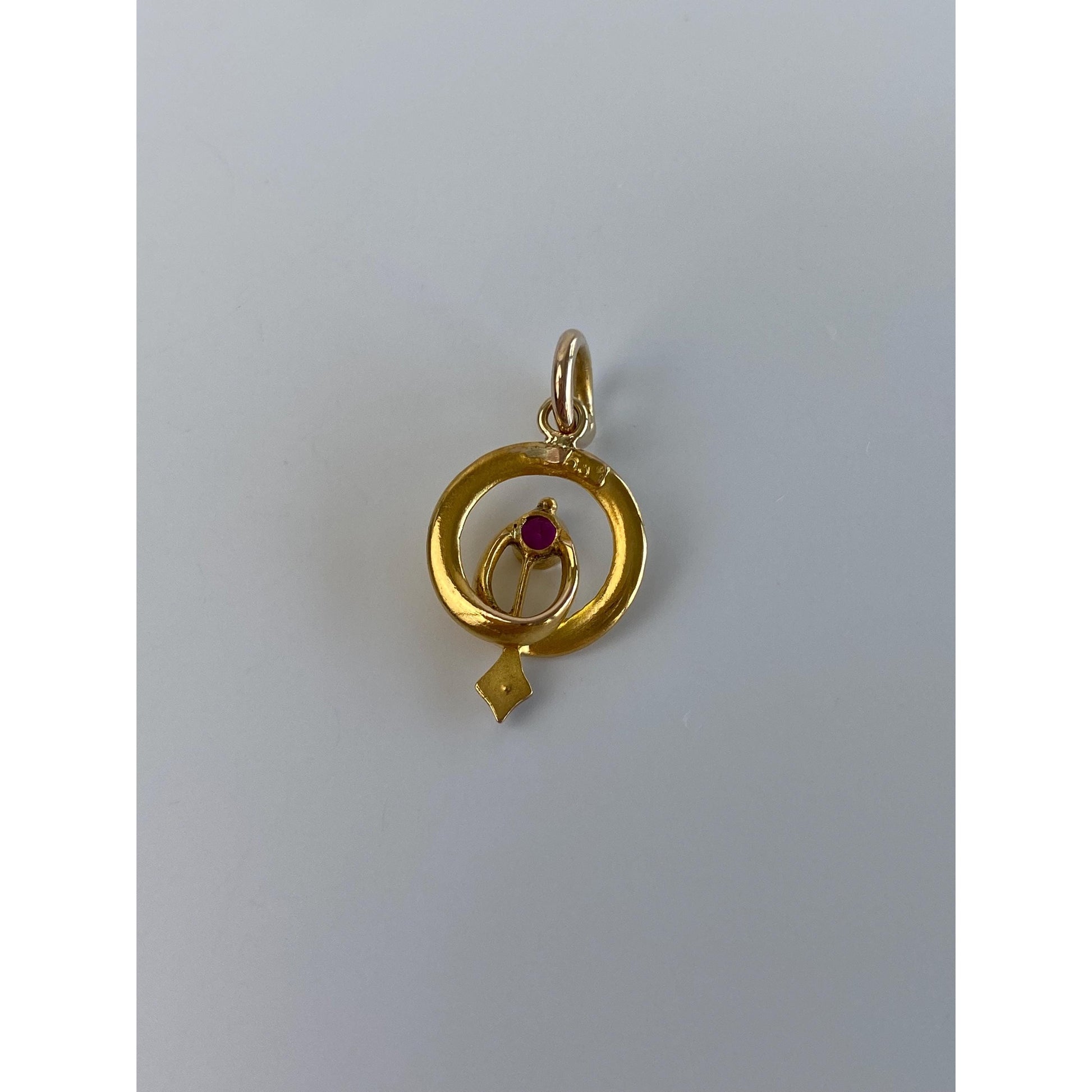 Vintage Solid 18k Yellow Gold Pink Sapphire Seed Pearl Stick Pin Conversion Charm