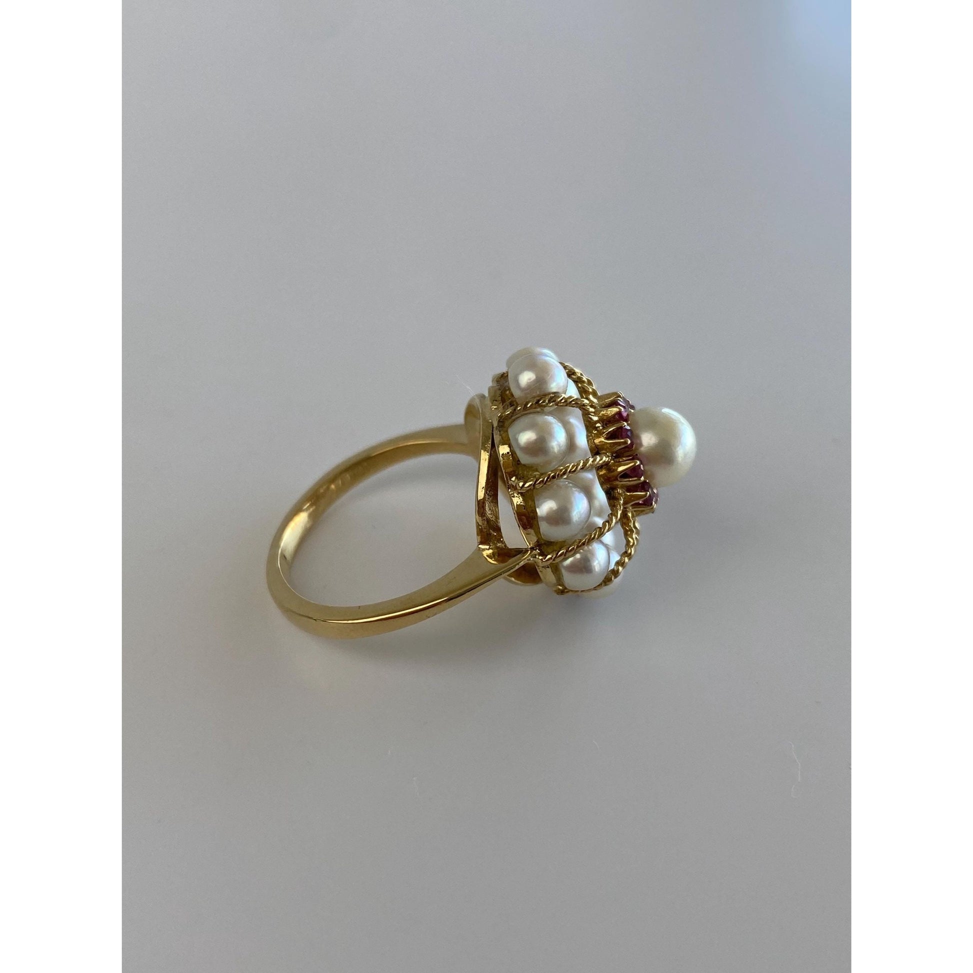 Vintage Solid 18k Yellow Gold Pink Spinel Pearl Cocktail Ring - Size 6.5