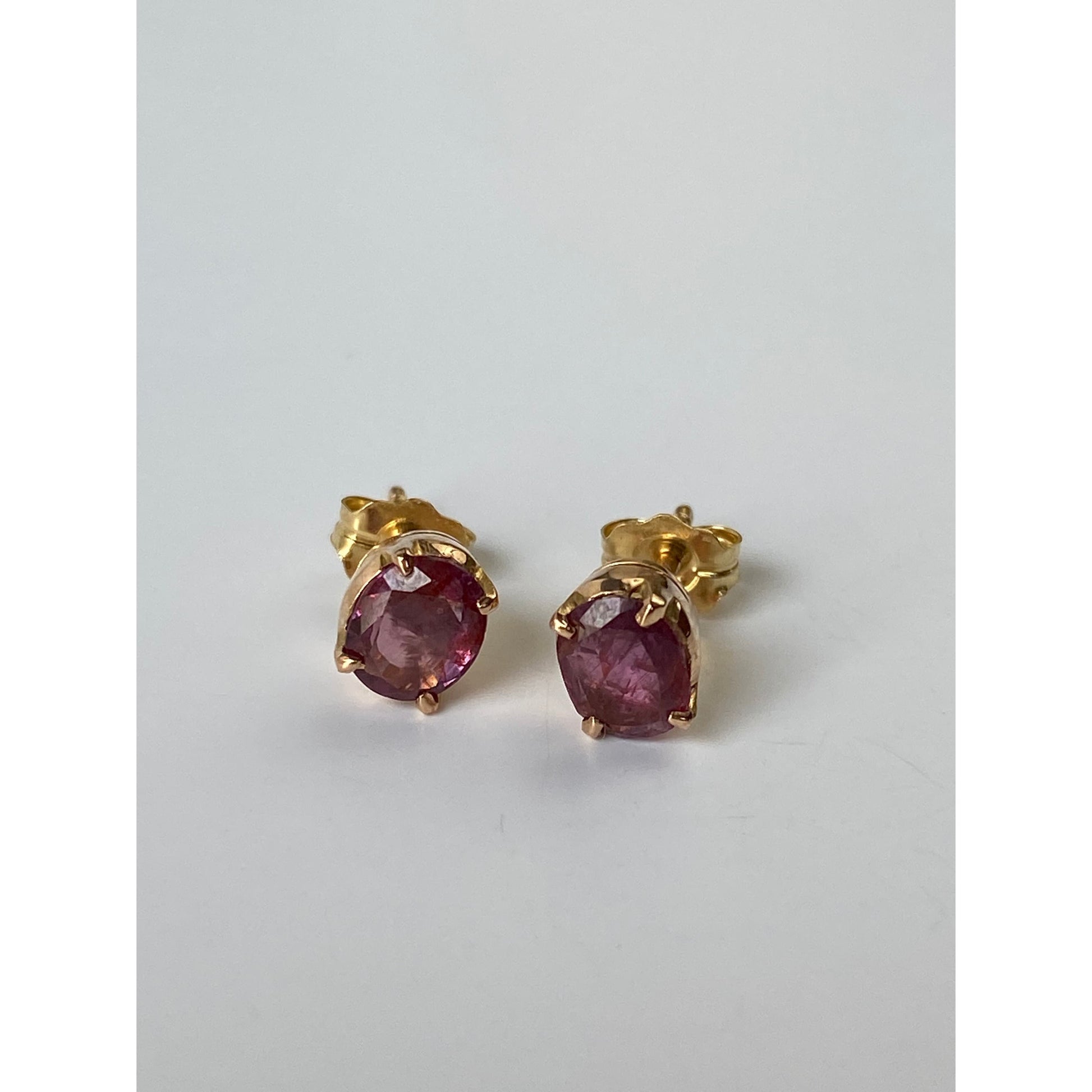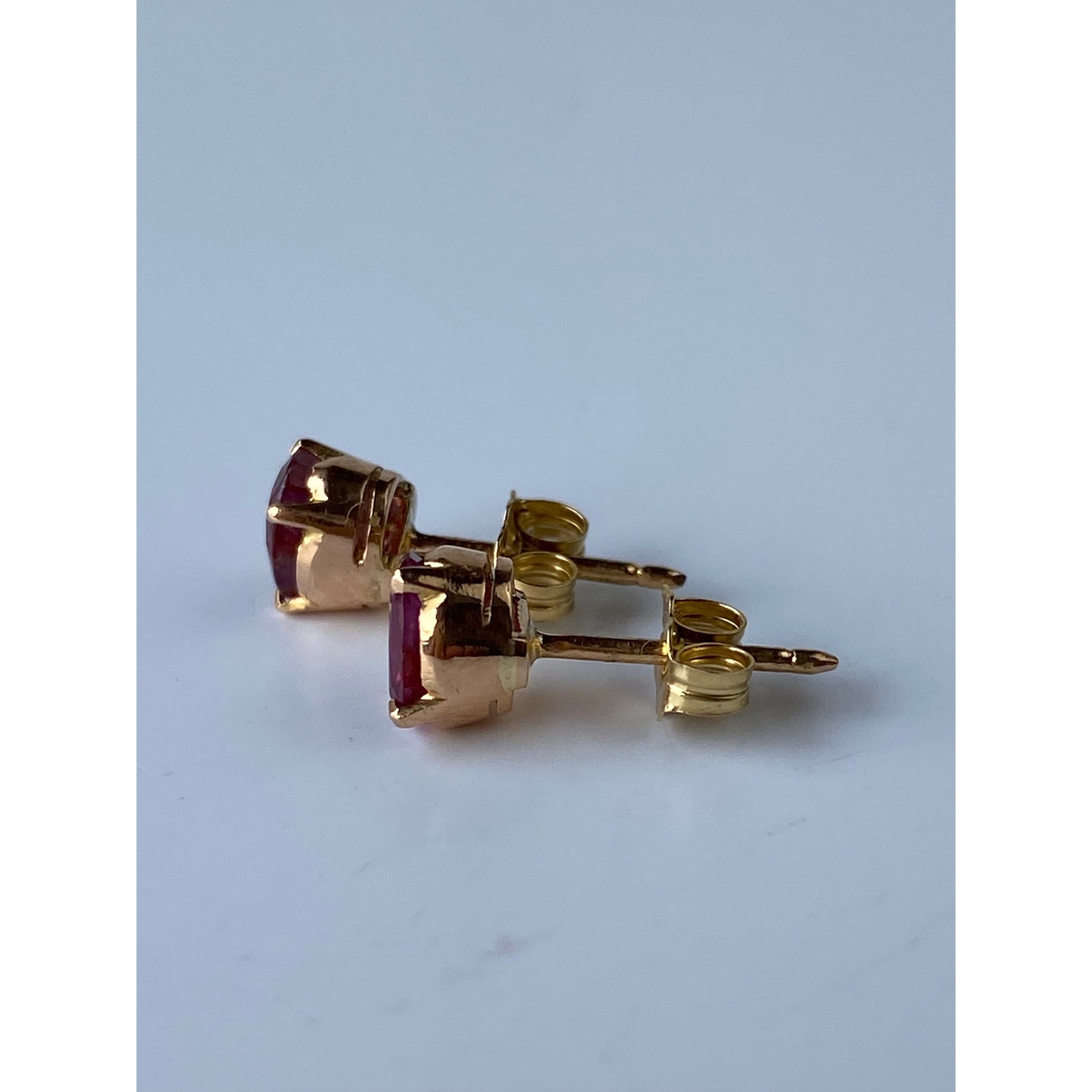 Vintage Solid 18k Yellow Gold Pink Spinel Stud Earrings