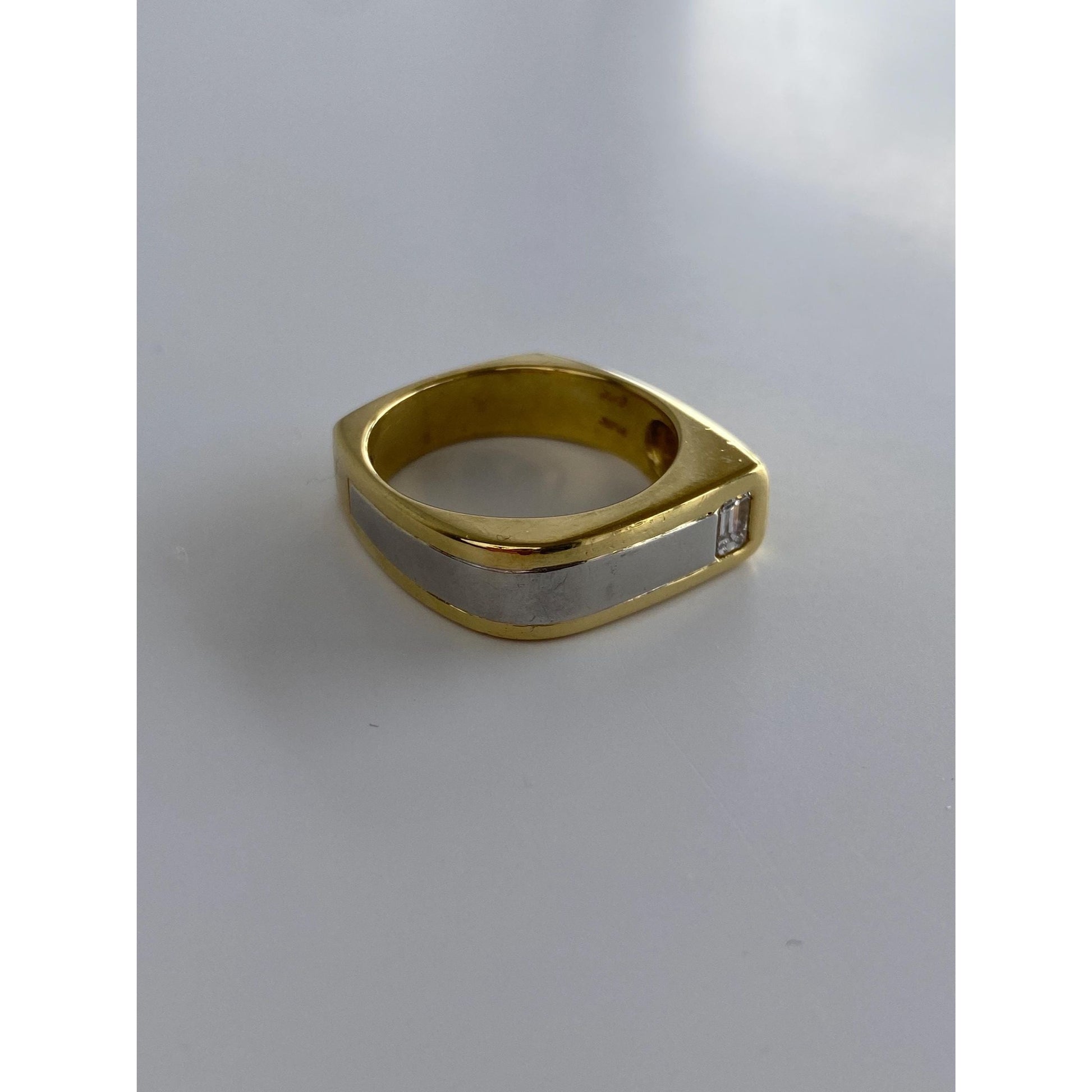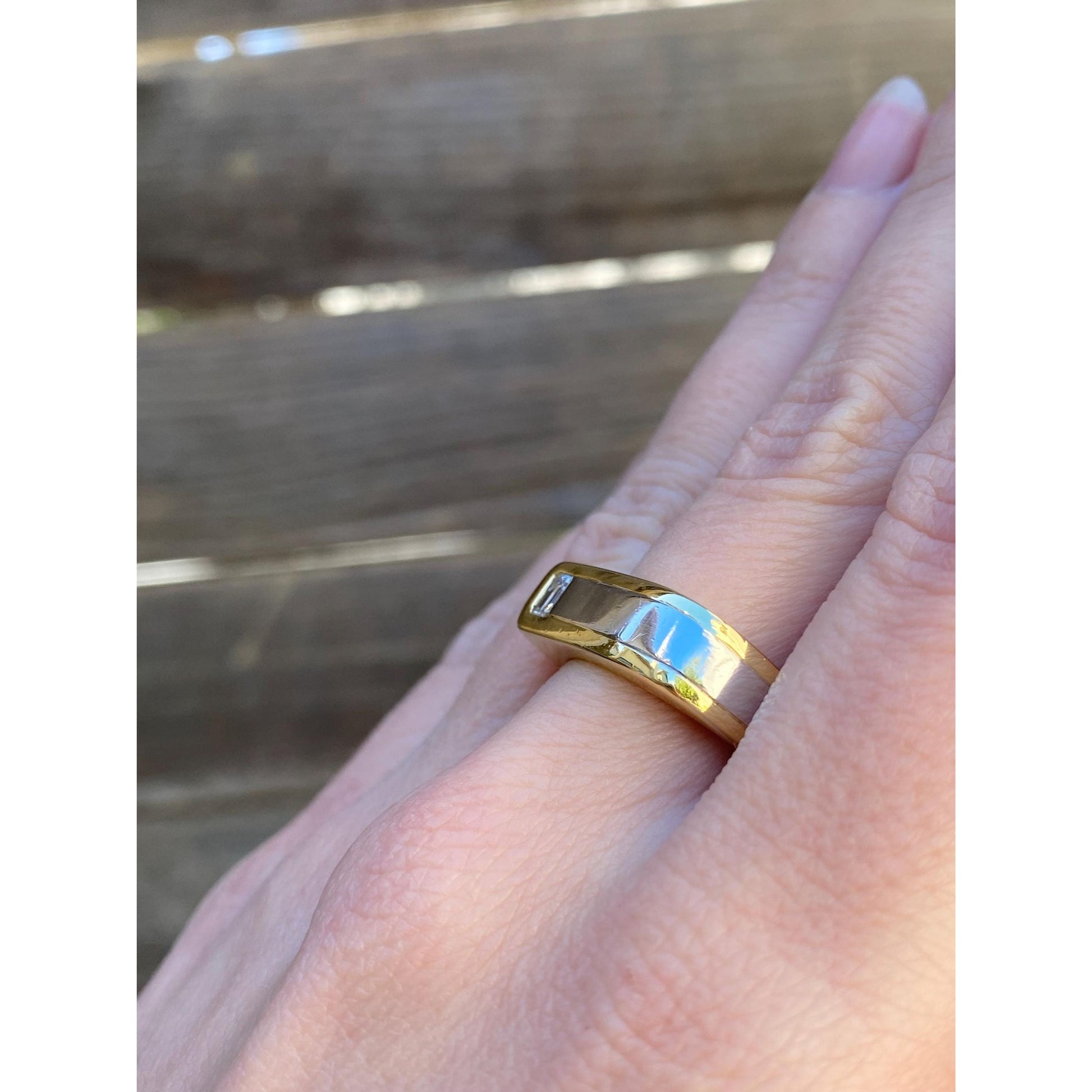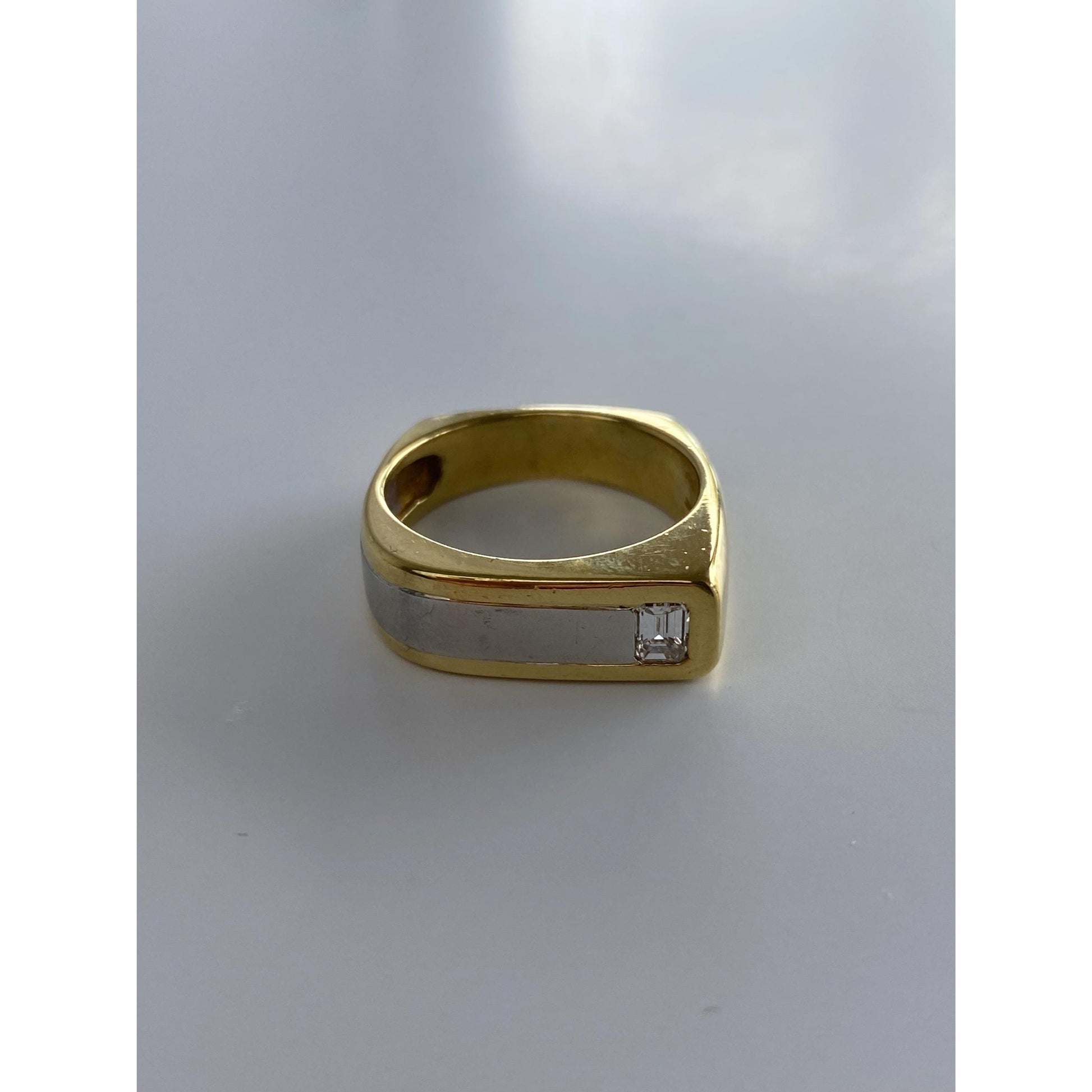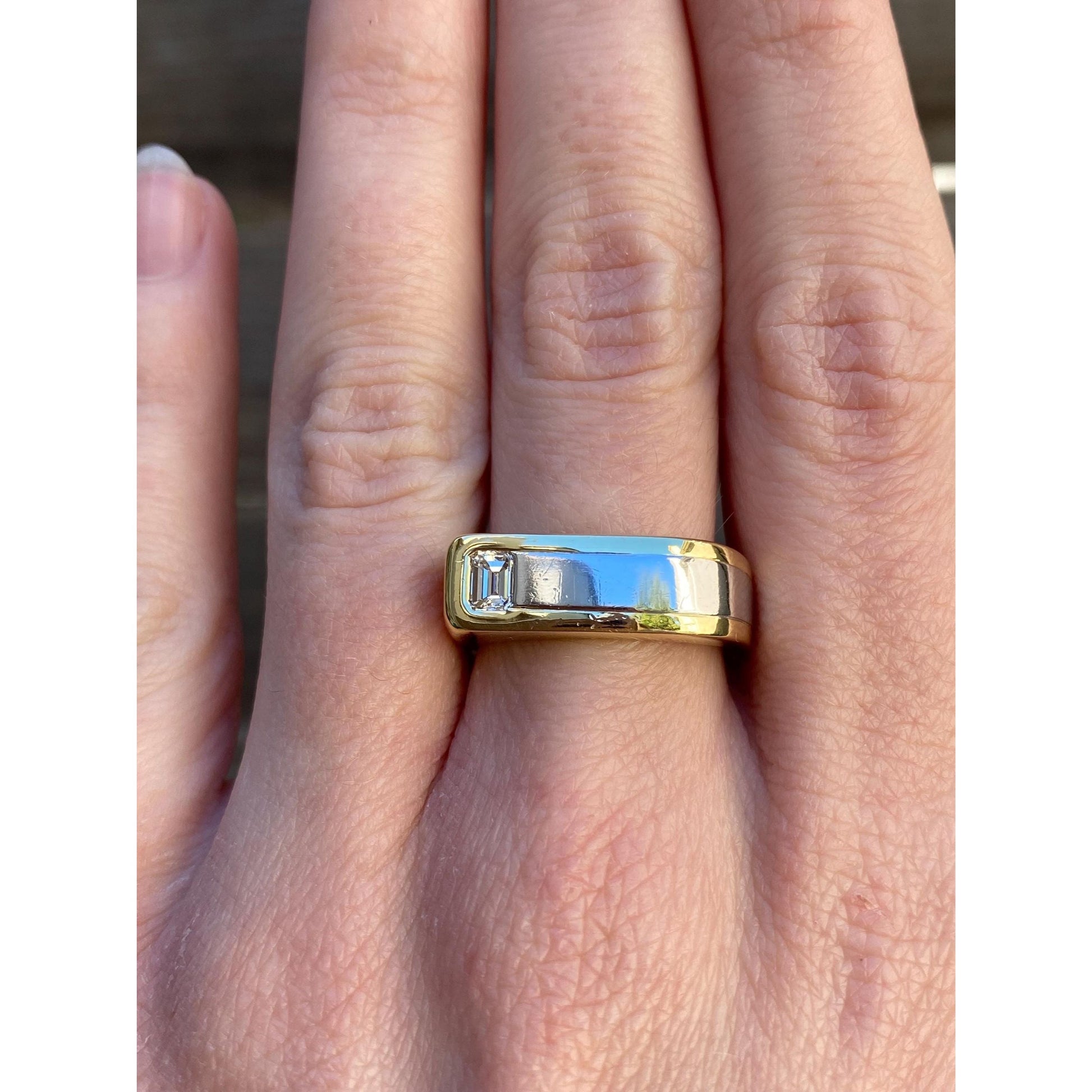 Vintage Solid 18k Yellow Gold & Platinum Diamond Square Ring Band - Size 8.5
