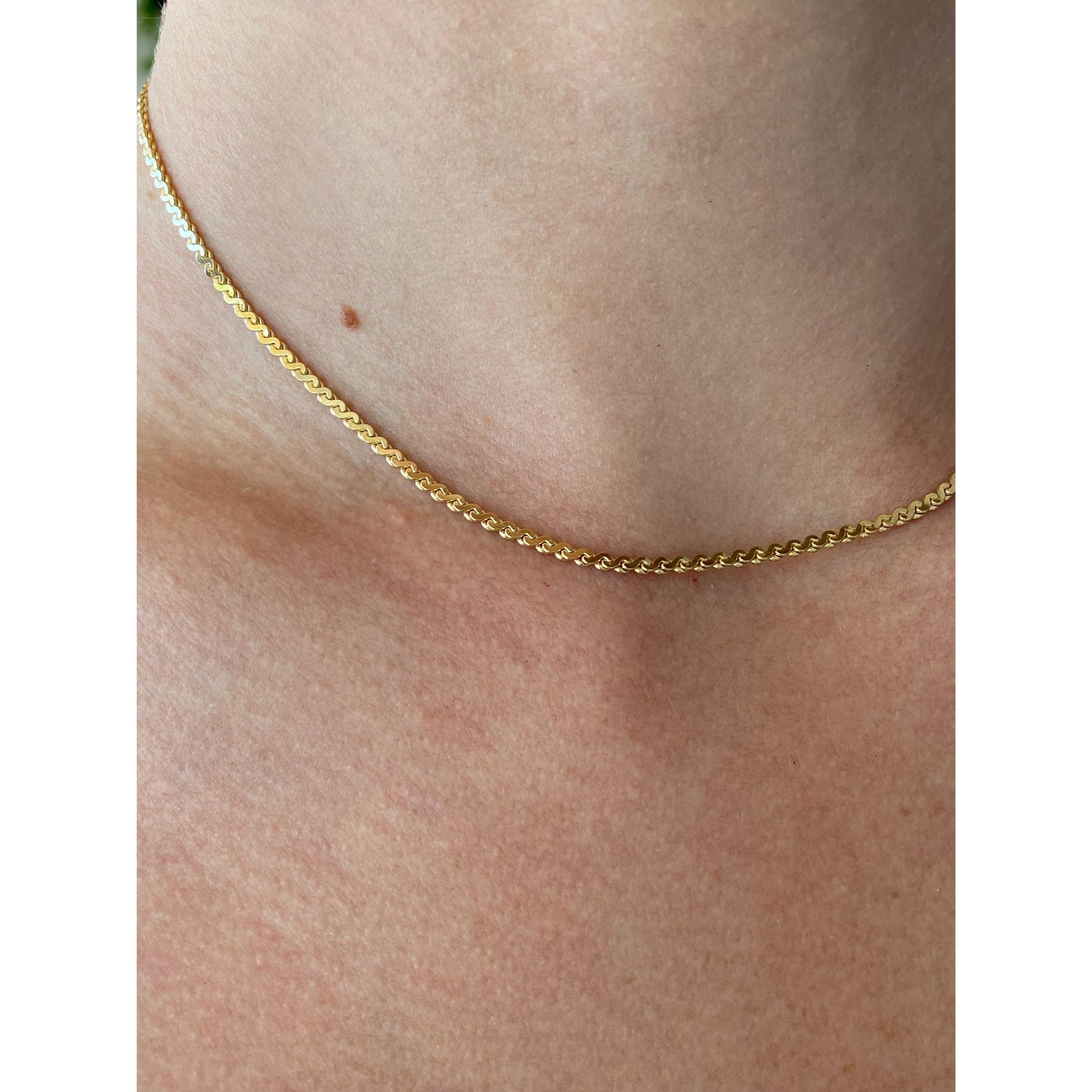 Vintage Solid 18k Yellow Gold Serpentine Chain Necklace - 15 inches