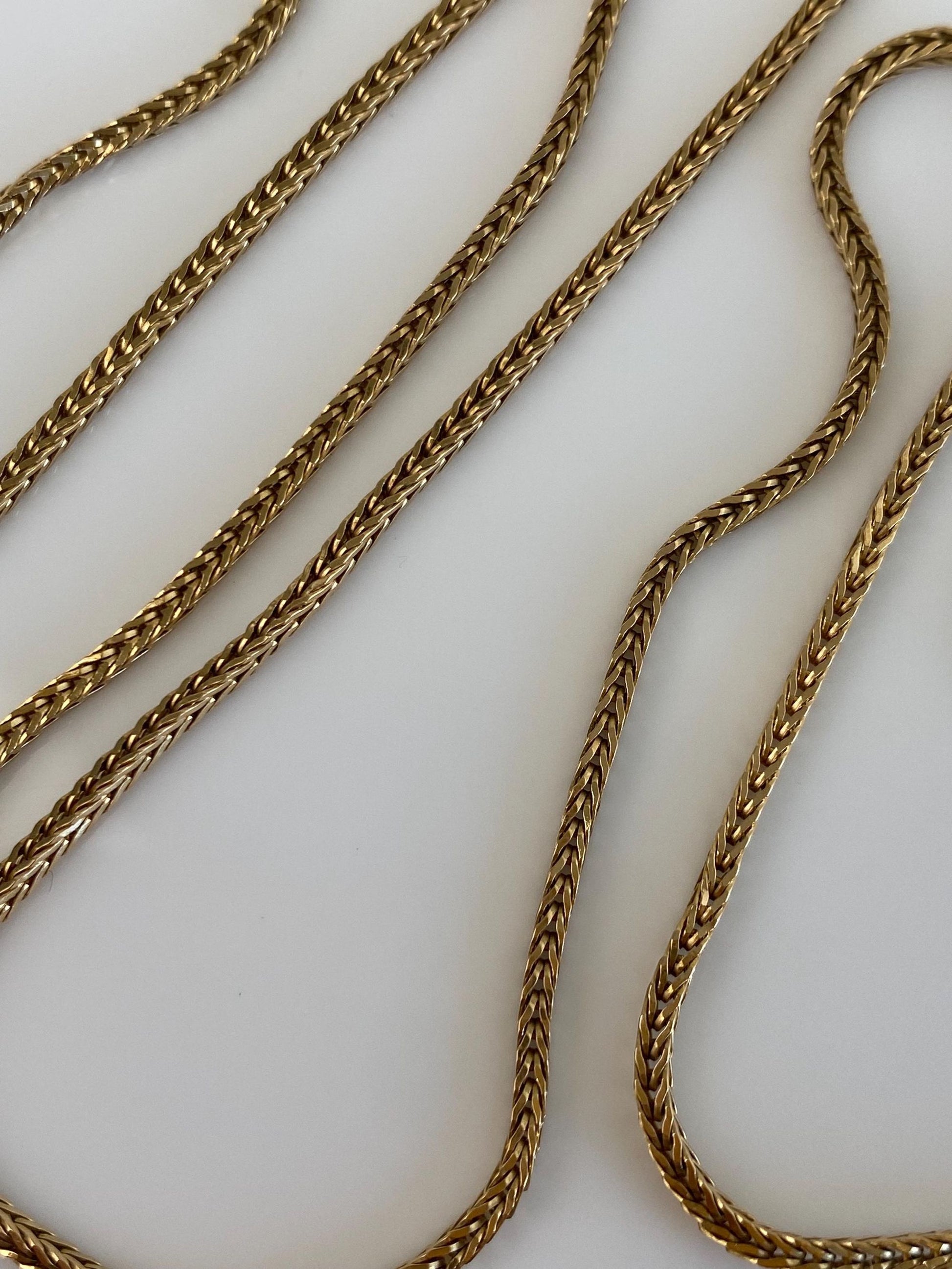 Vintage Solid 18k Yellow Gold Square Wheat Chain Necklace - 24.5 inches