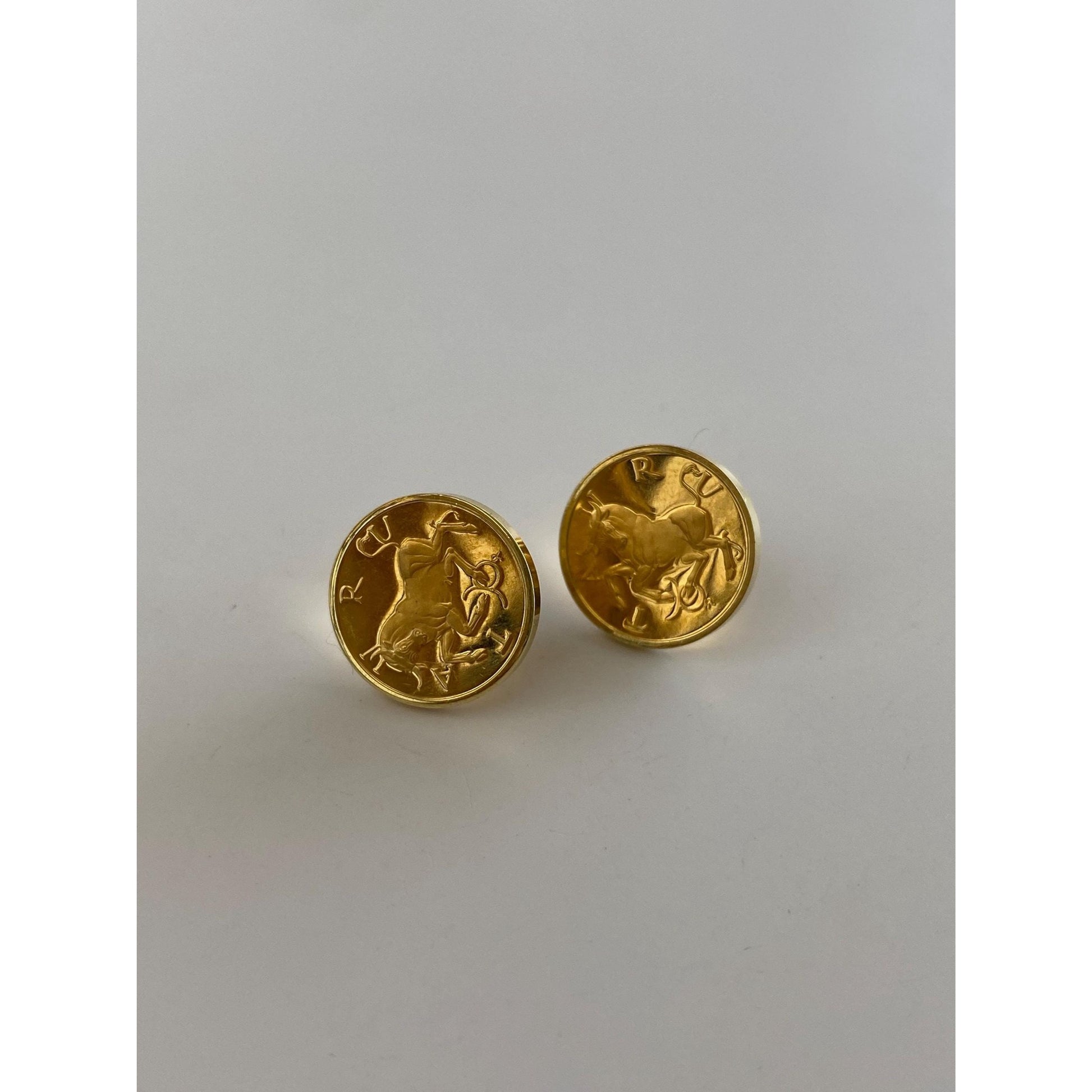 Vintage Solid 18k Yellow Gold Taurus Bull Coin Stud Earrings