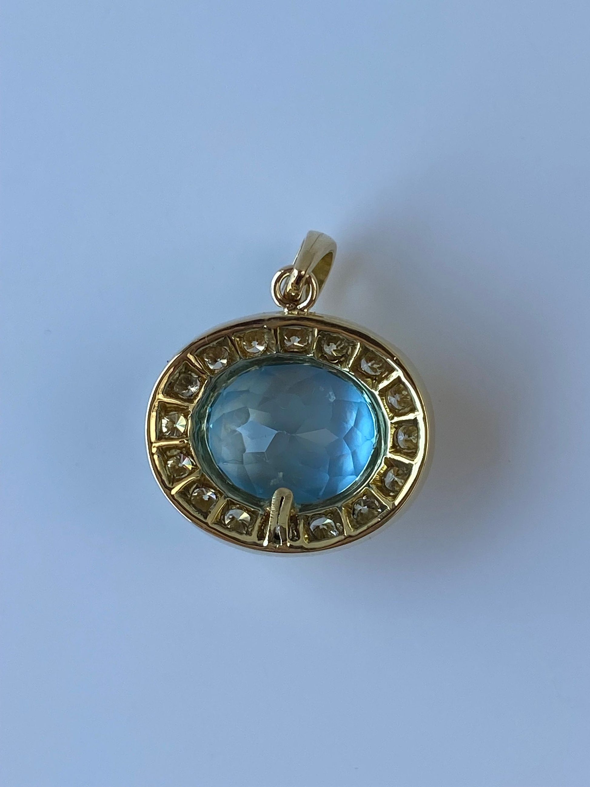 Vintage Solid 18k Yellow Gold Topaz & Diamond Charm