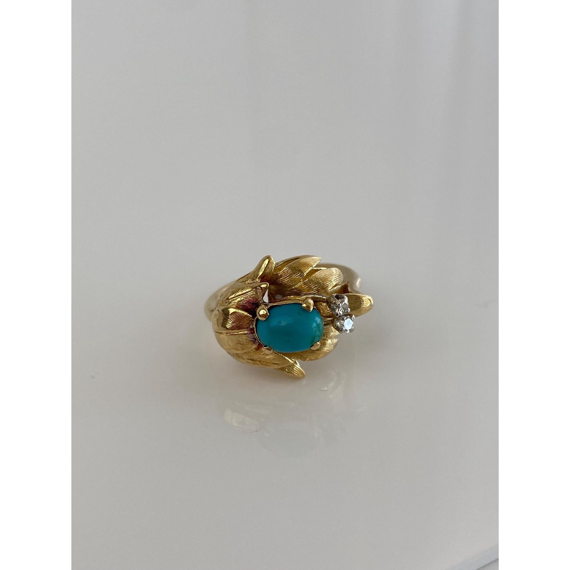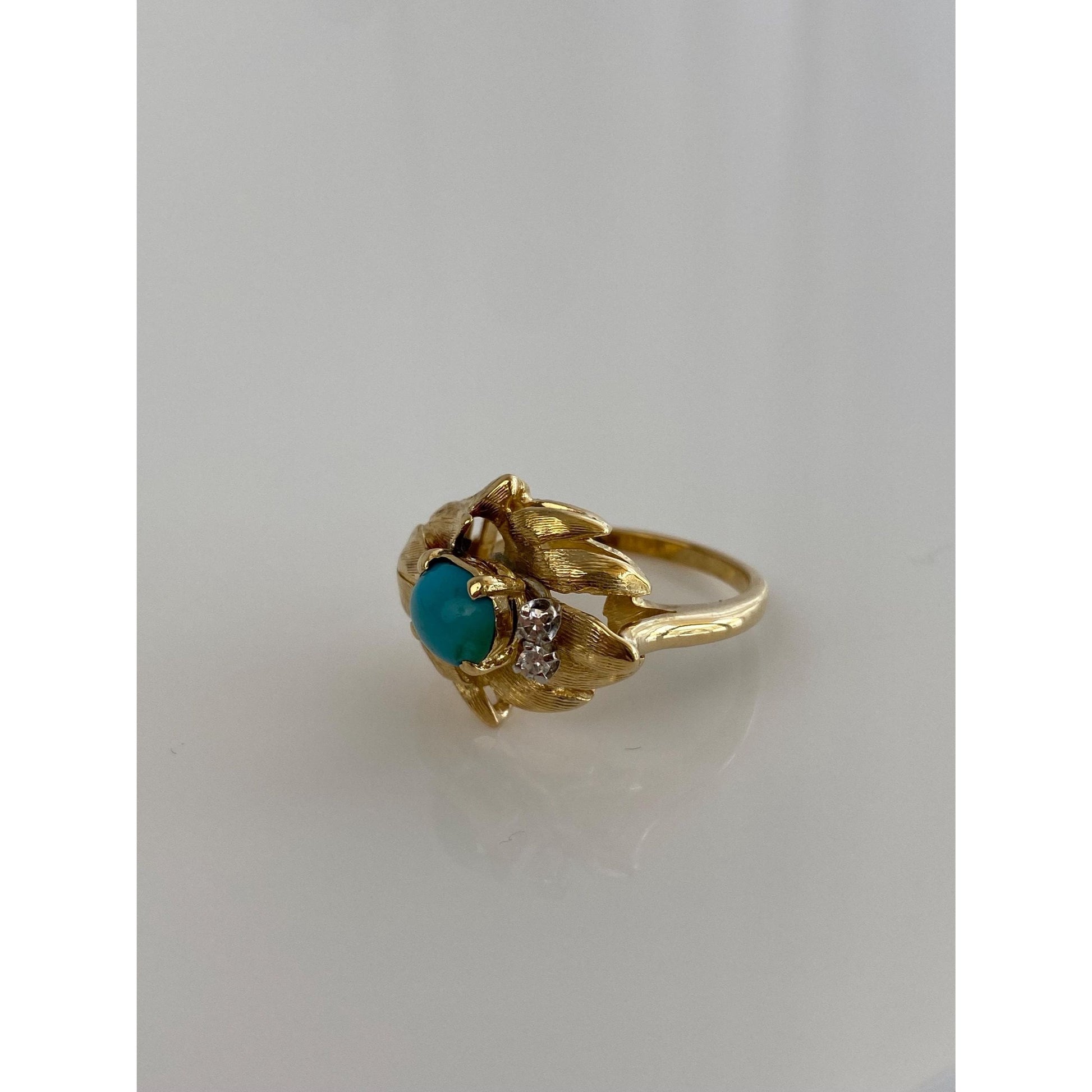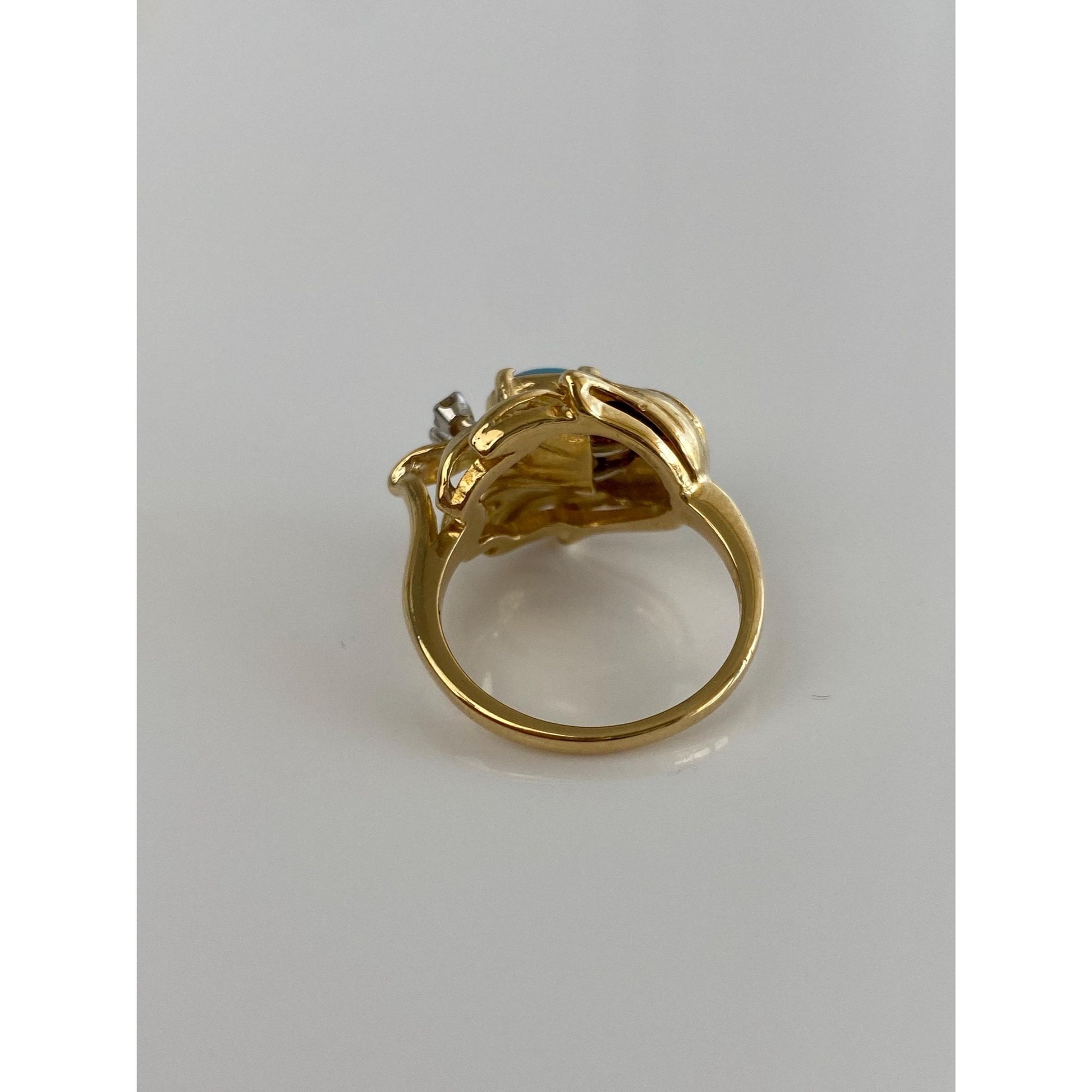 Vintage Solid 18k Yellow Gold Turquoise Clear Sapphire Ring - Size 6.75