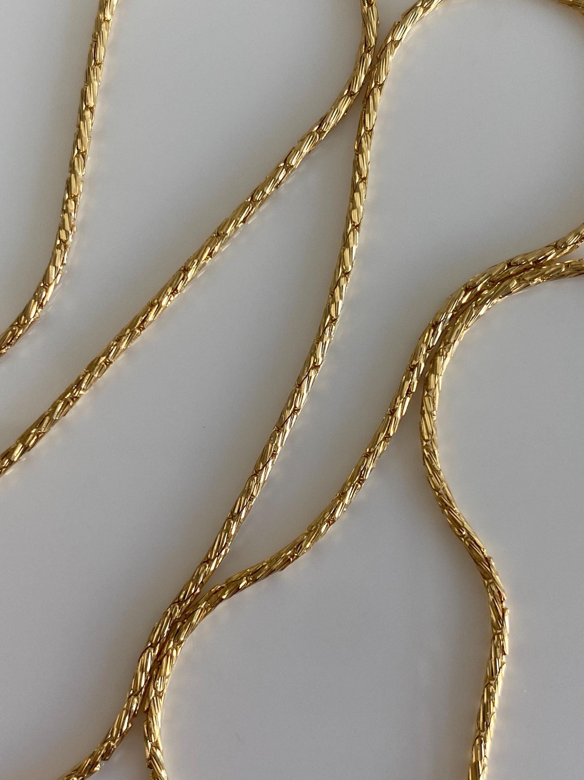 Vintage Solid 18k Yellow Gold Twist Snake Chain Necklace - 16 inches