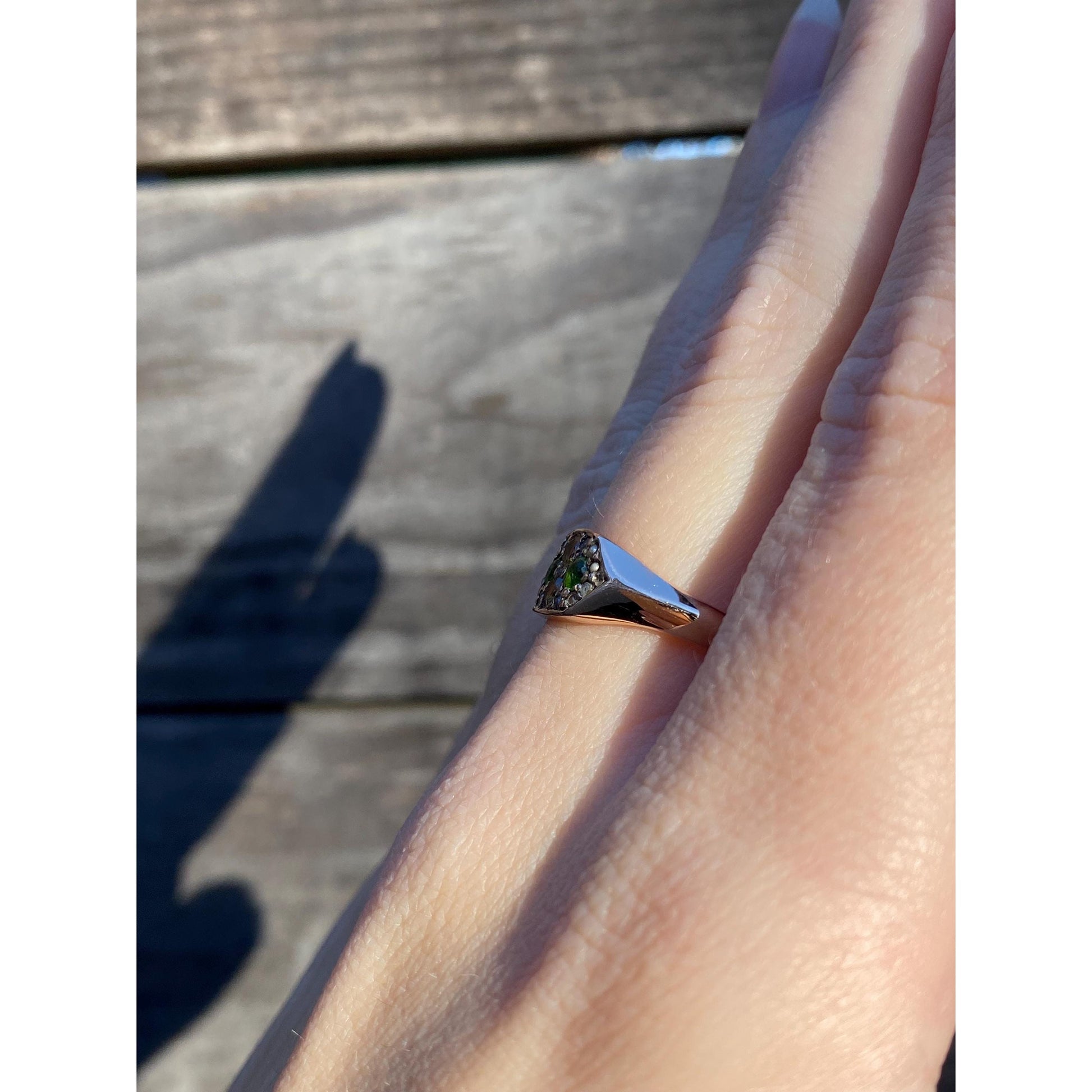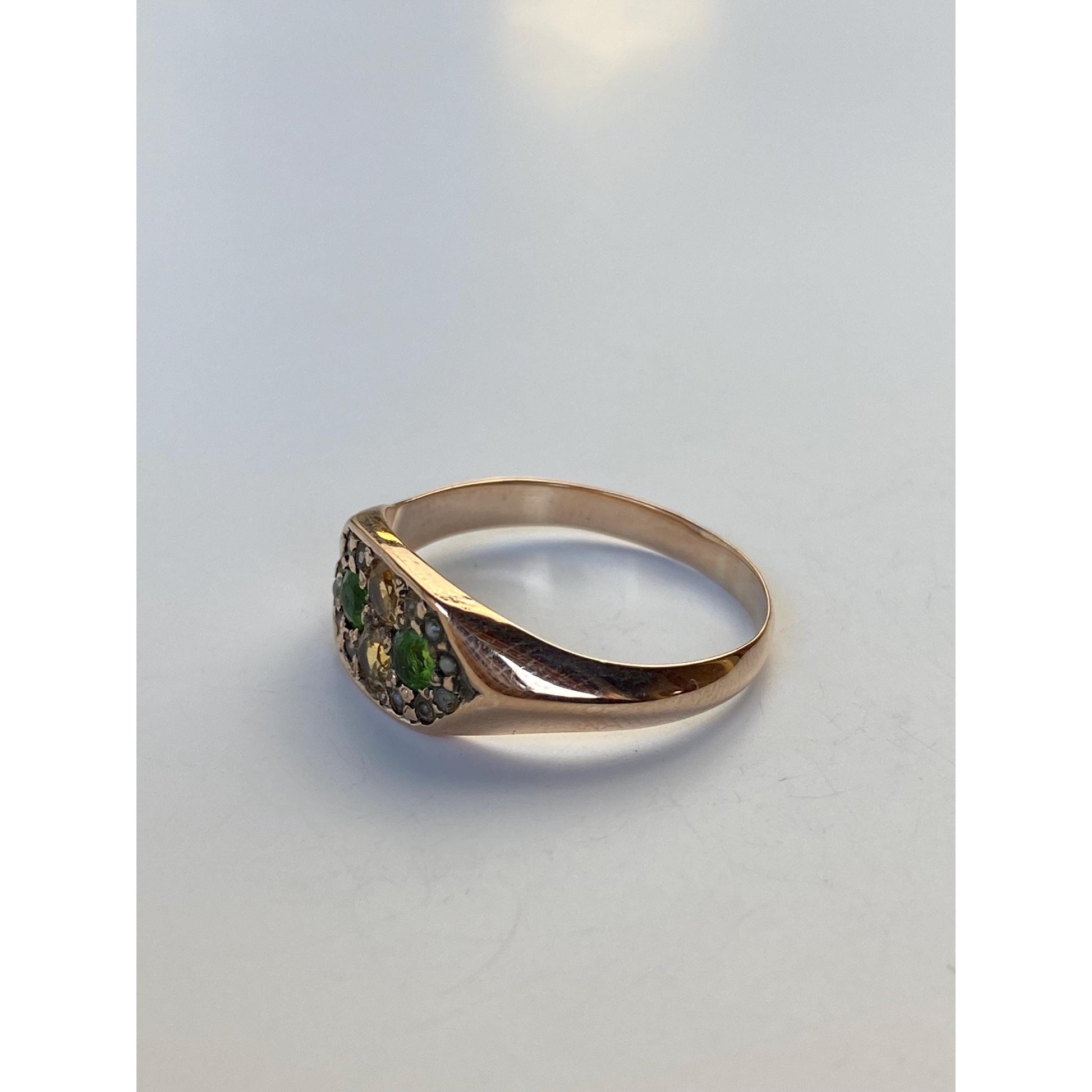 Vintage Solid 8k Rosey Gold Yellow Sapphire Green Cubic Zirconia Ring - Size 7