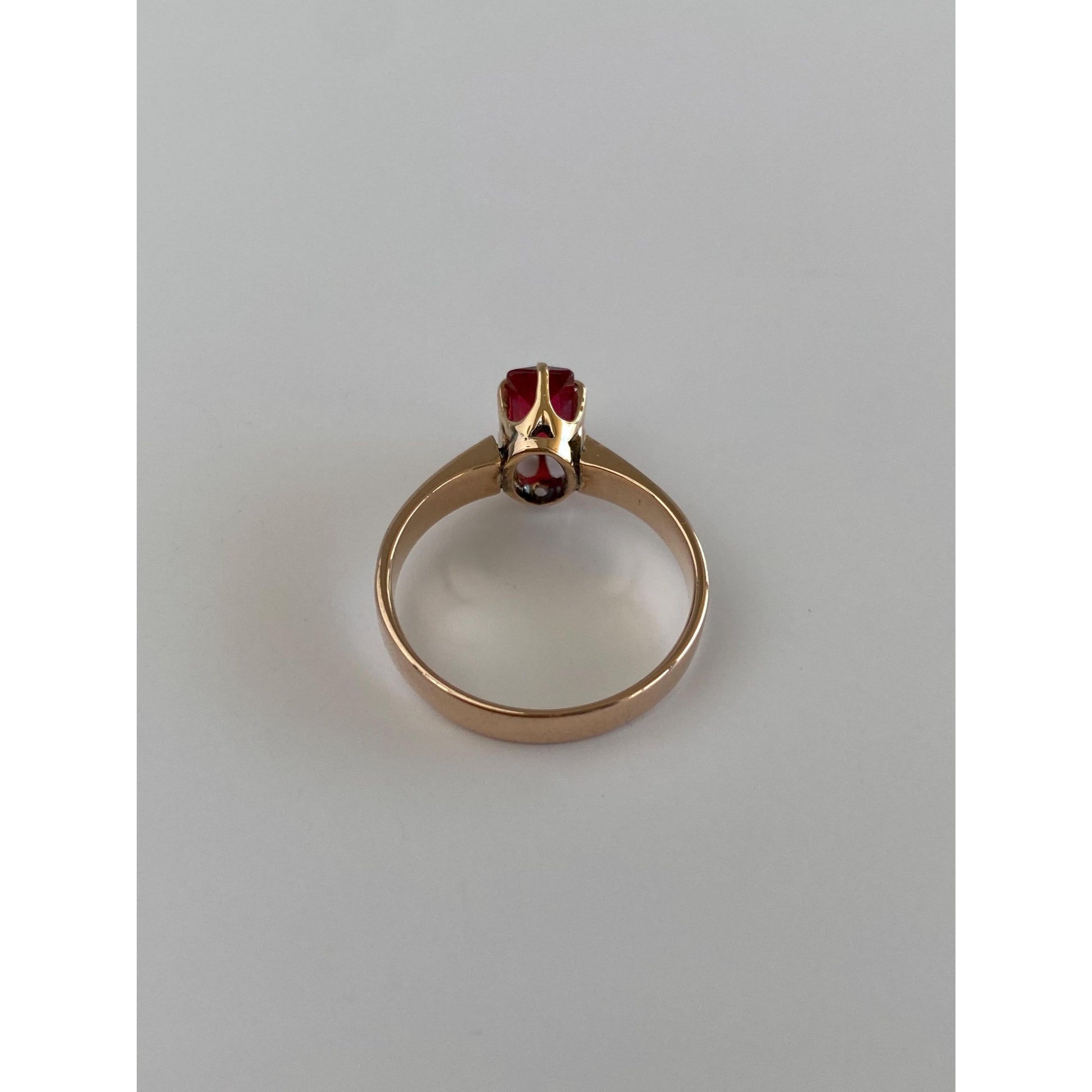Vintage Solid 9k Rosey Gold Red Cubic Zirconia Ring - Size 7