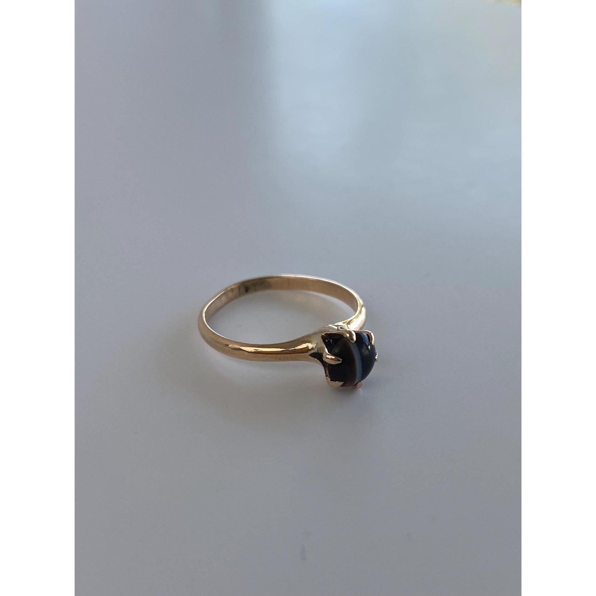 Vintage Solid 9k Yellow Gold Agate Ring - Size 5
