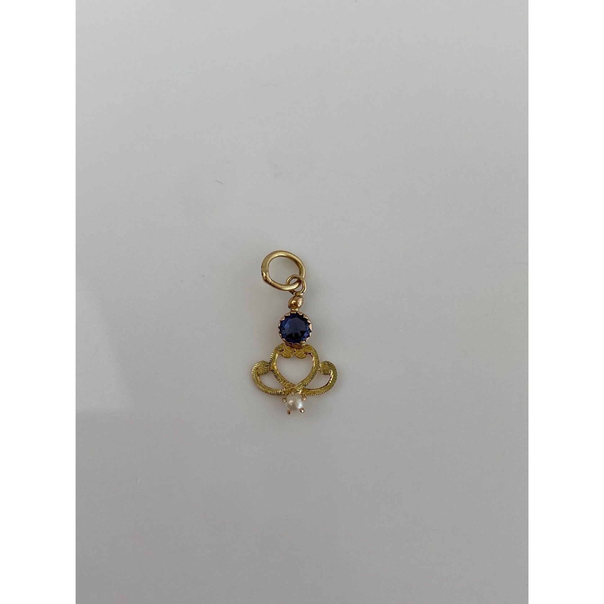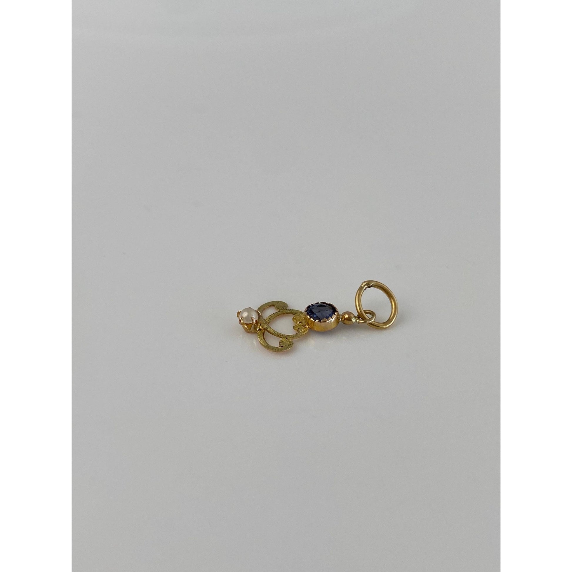 Vintage Solid 9k Yellow Gold Blue Cubic Zirconia Seed Pearl Stick Pin Conversion Charm