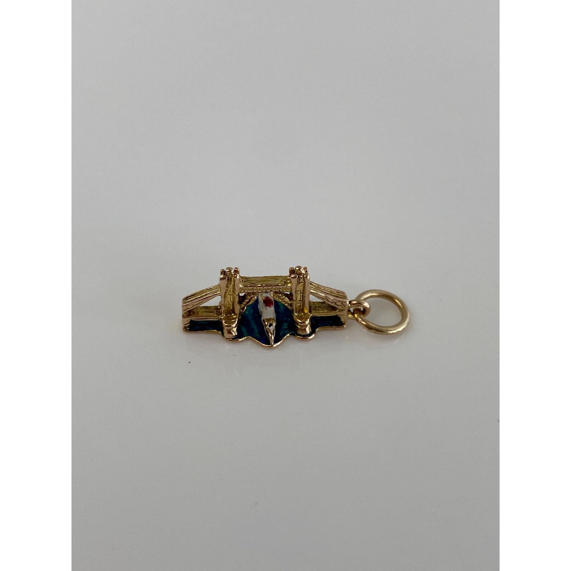 Vintage Solid 9k Yellow Gold Enamel Boat Opening Bridge Charm