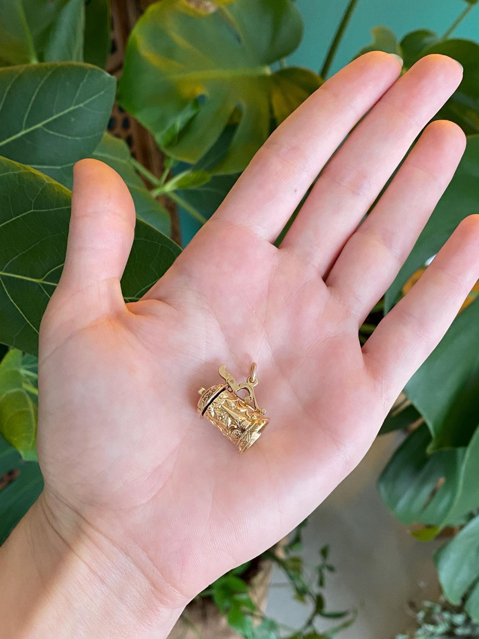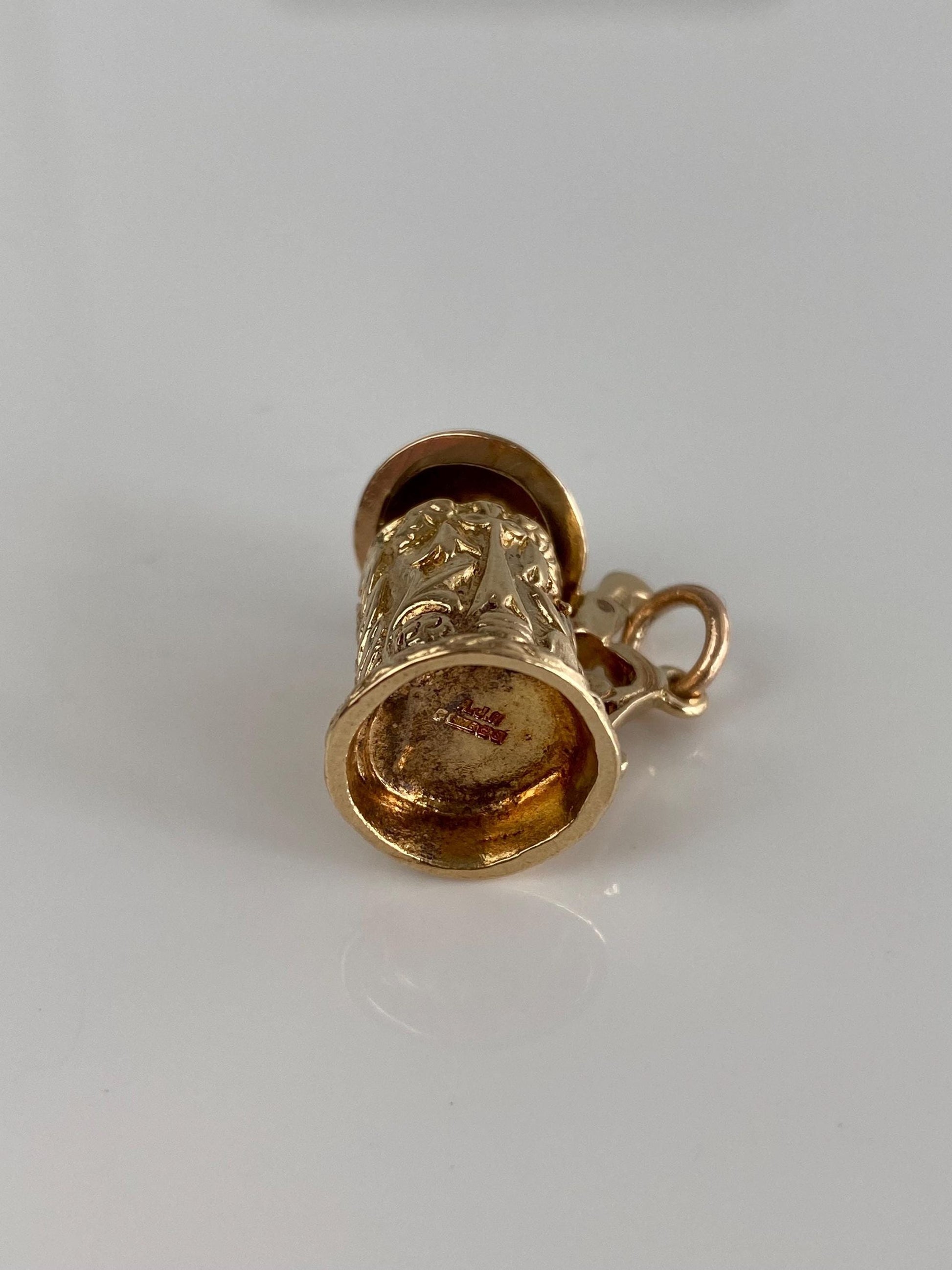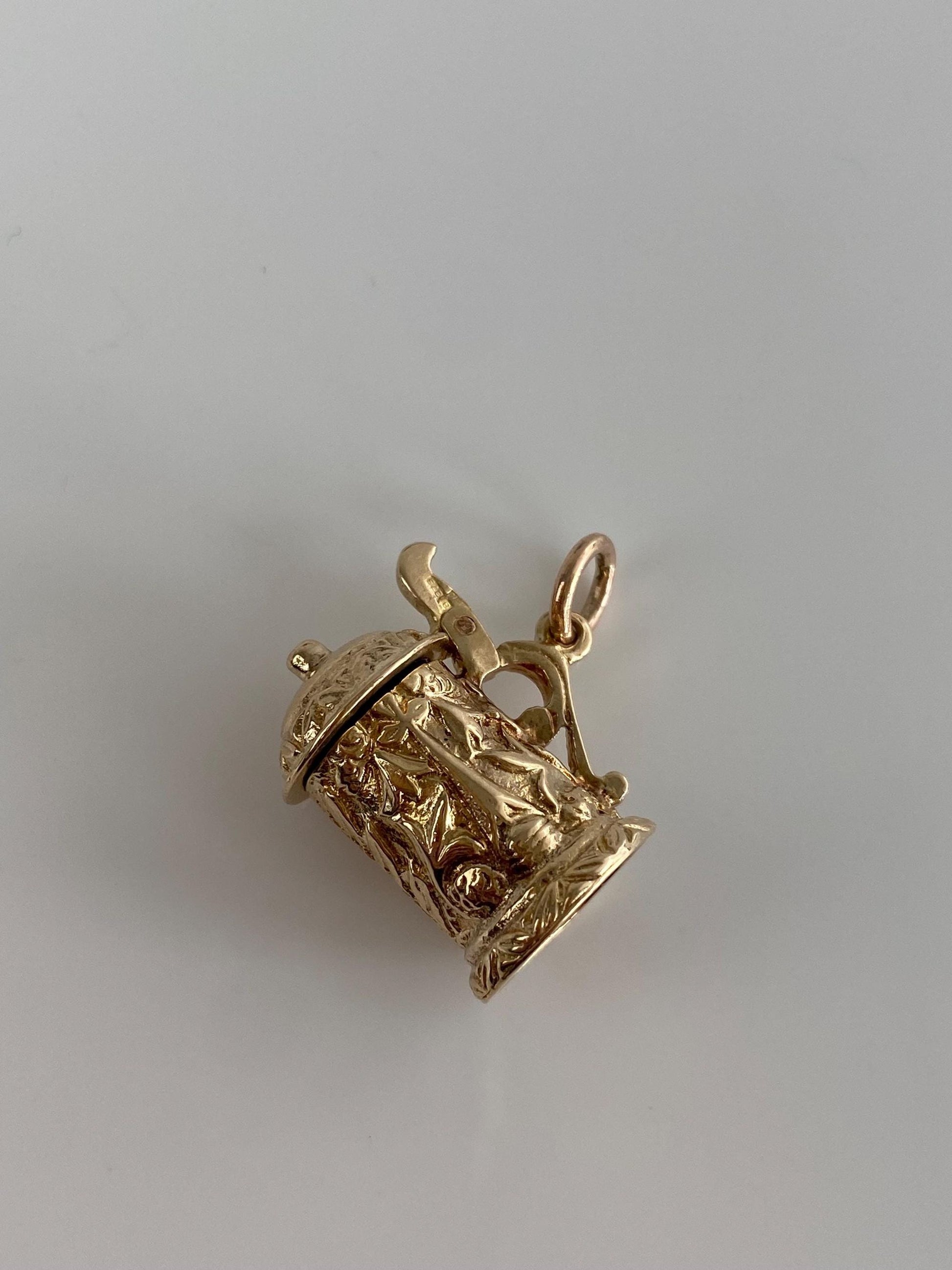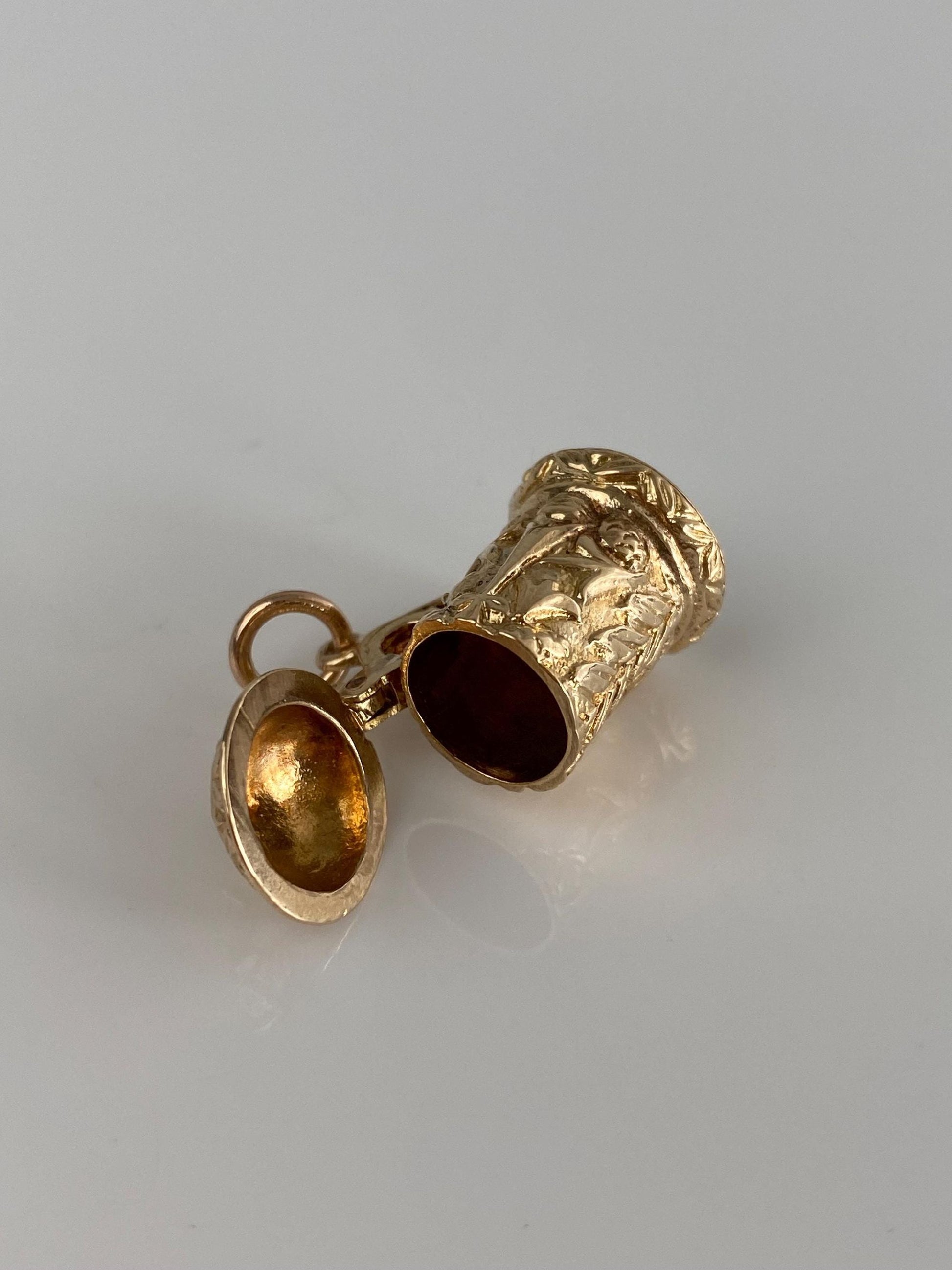 Vintage Solid 9k Yellow Gold Floral Beer Stein Charm
