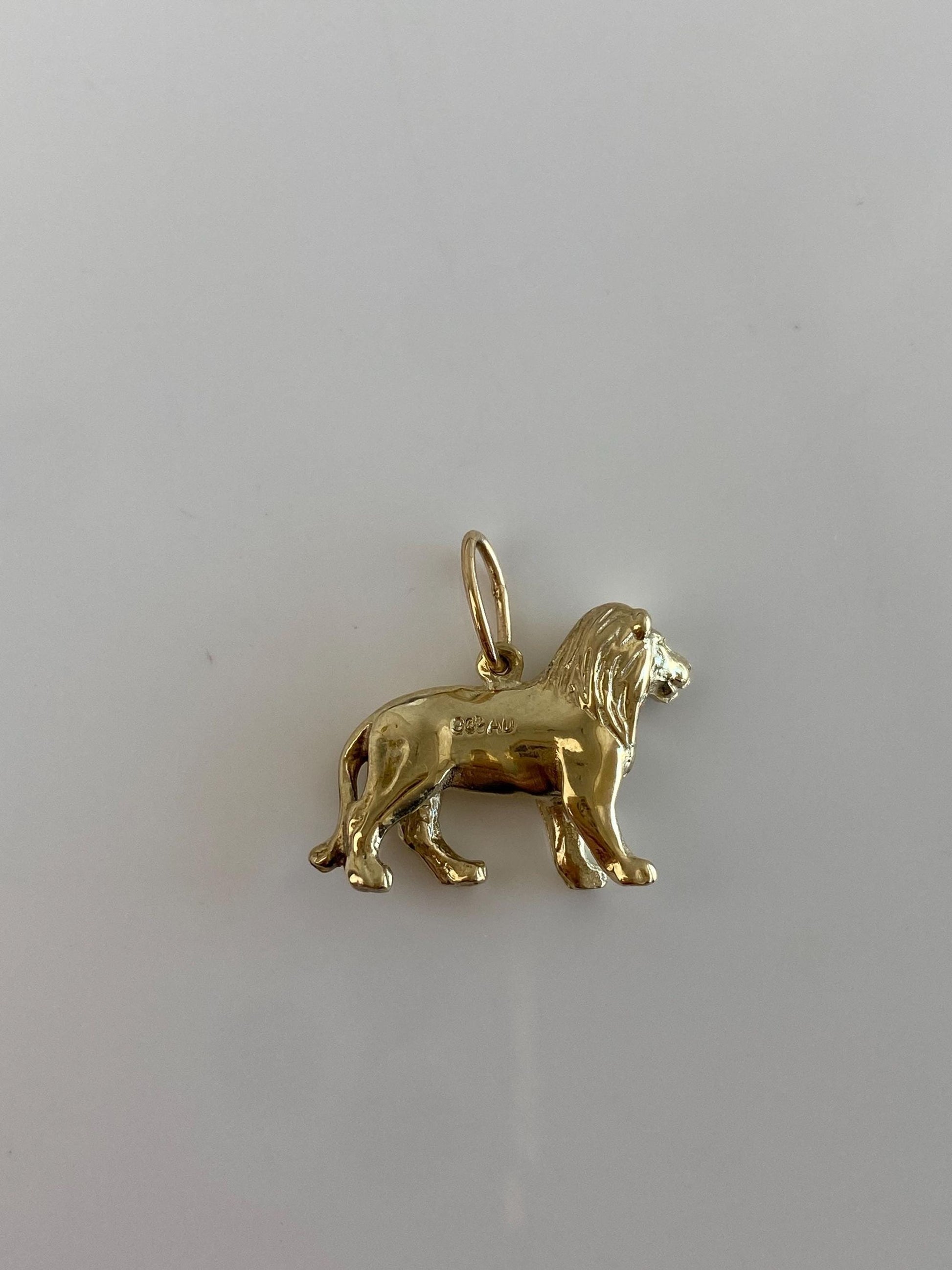 Vintage Solid 9k Yellow Gold Lion Charm - Fine Estate Jewelry - Real Genuine Gold