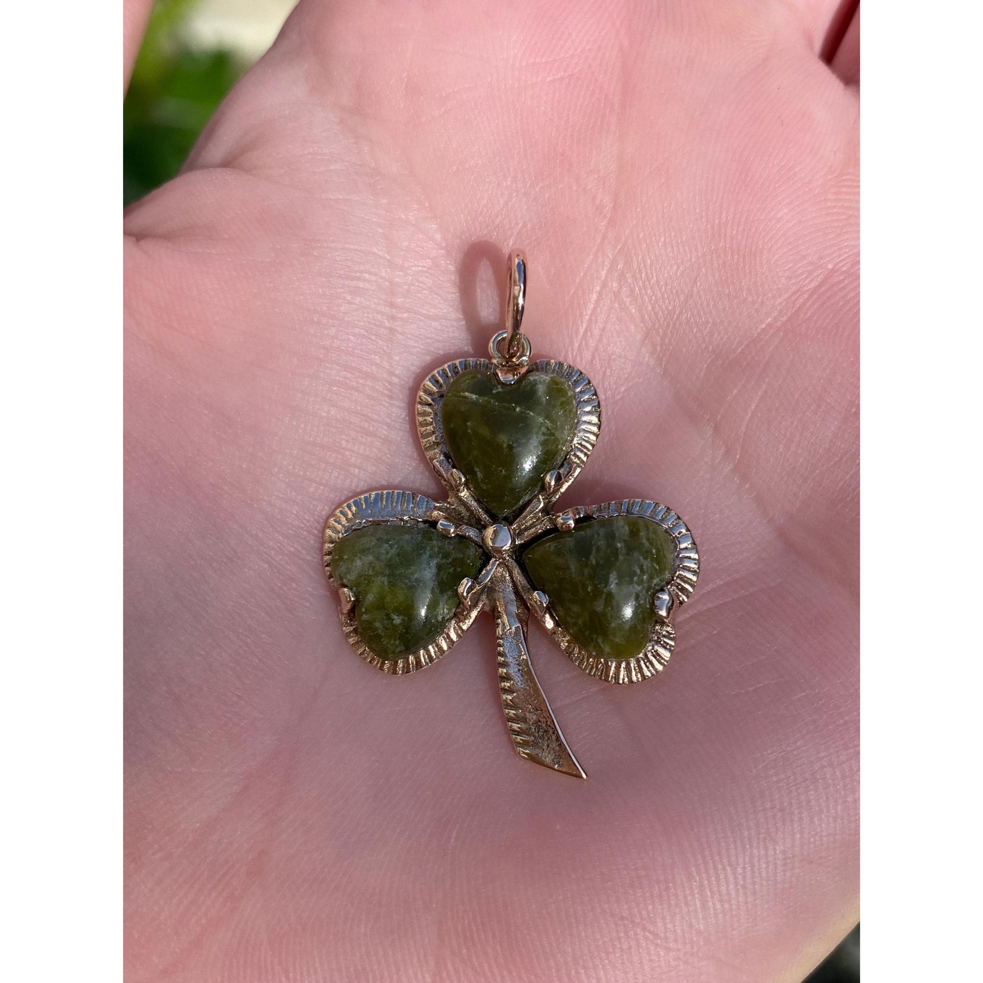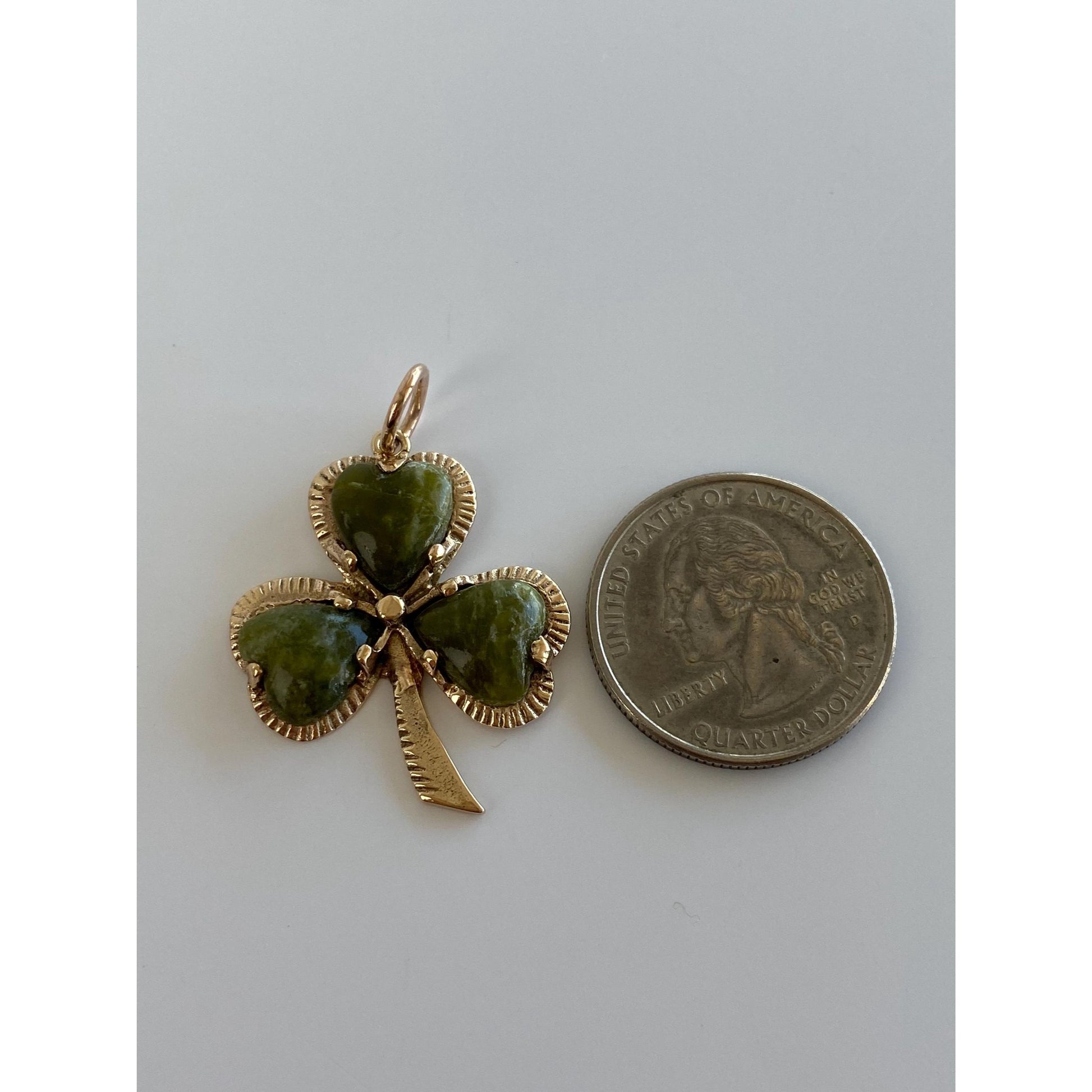 Vintage Solid 9k Yellow Gold Nephrite Clover Charm