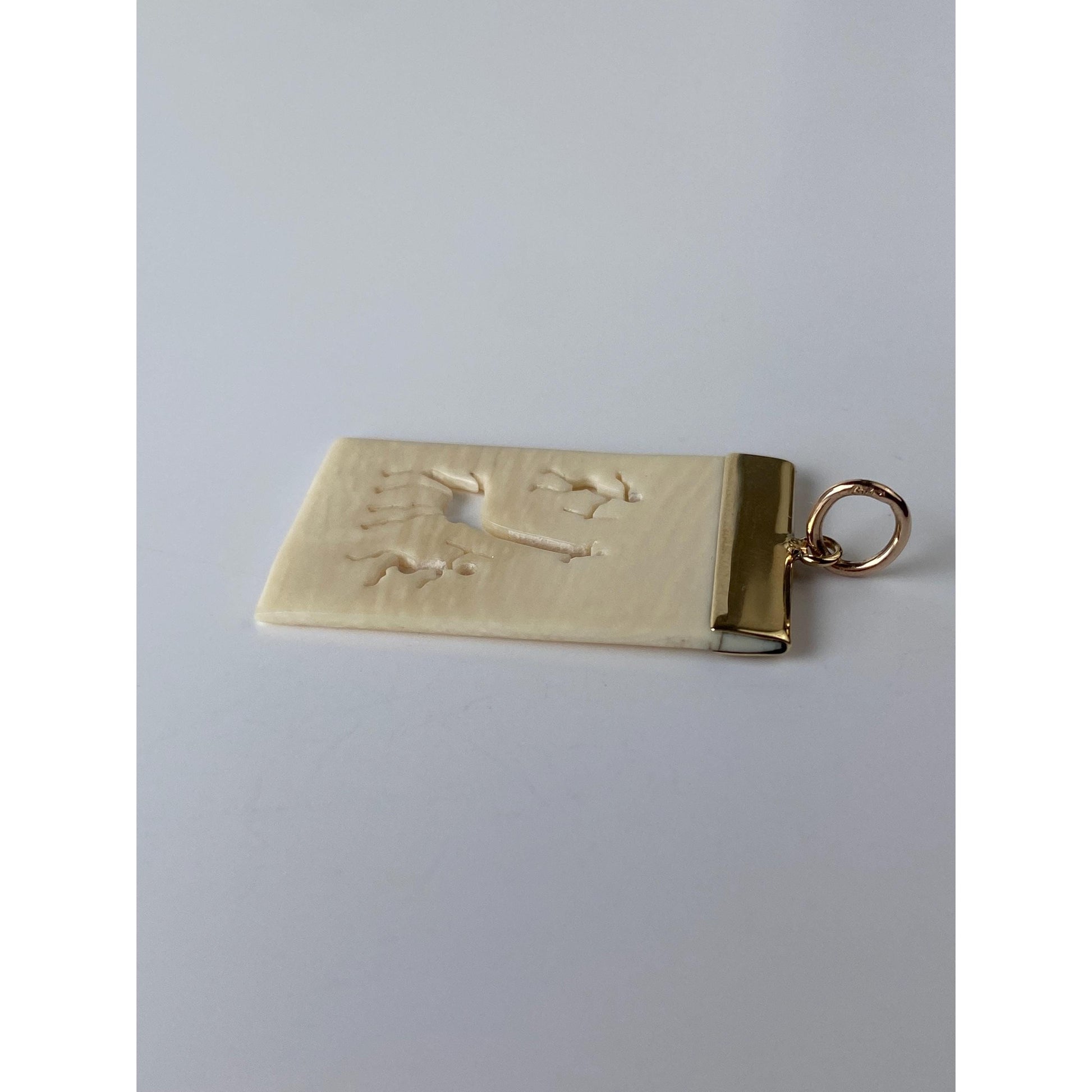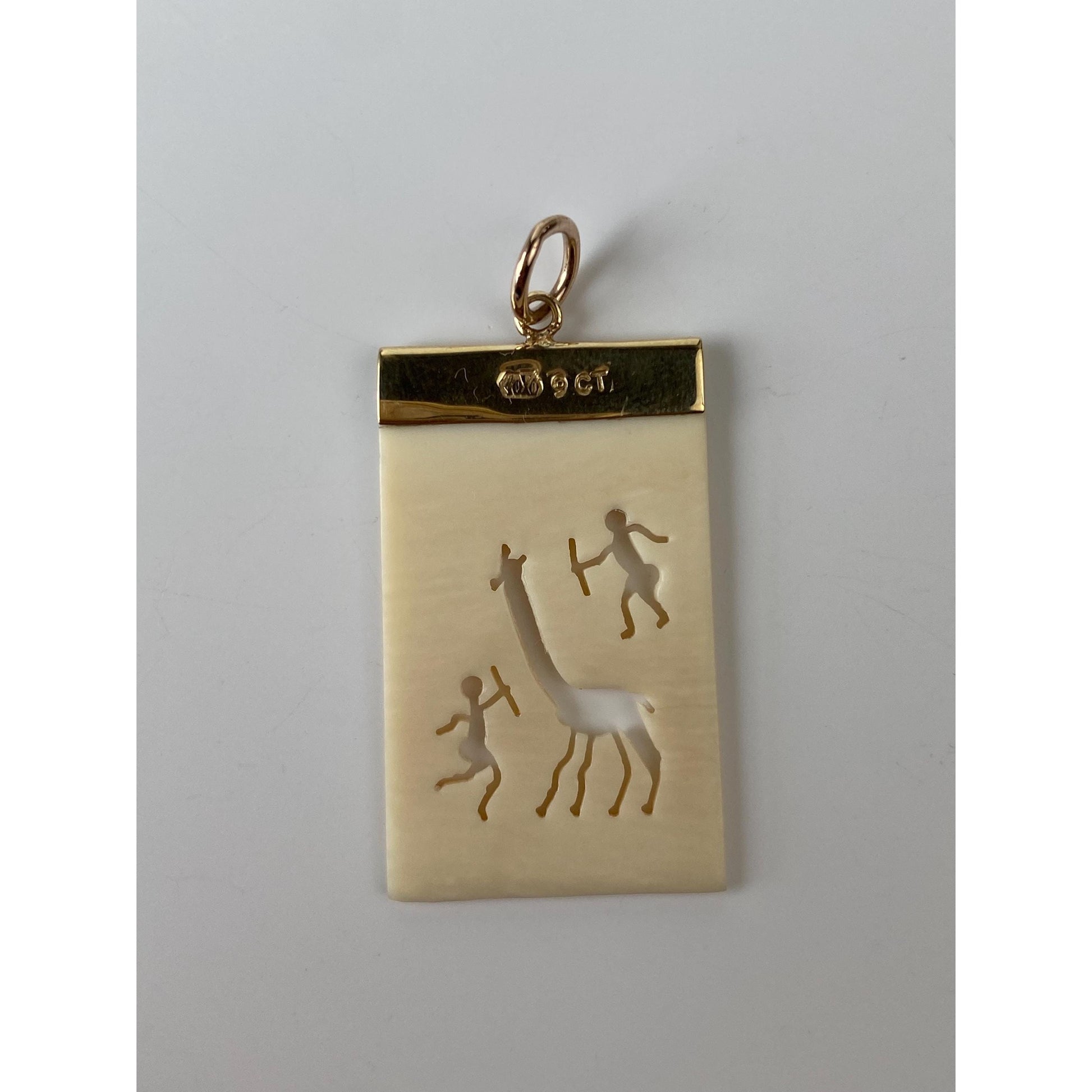 Vintage Solid 9k Yellow Gold White Stone Carved Giraffe Charm