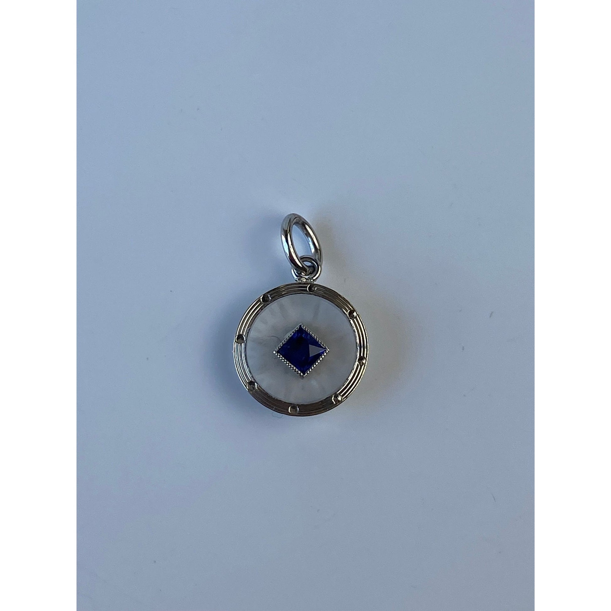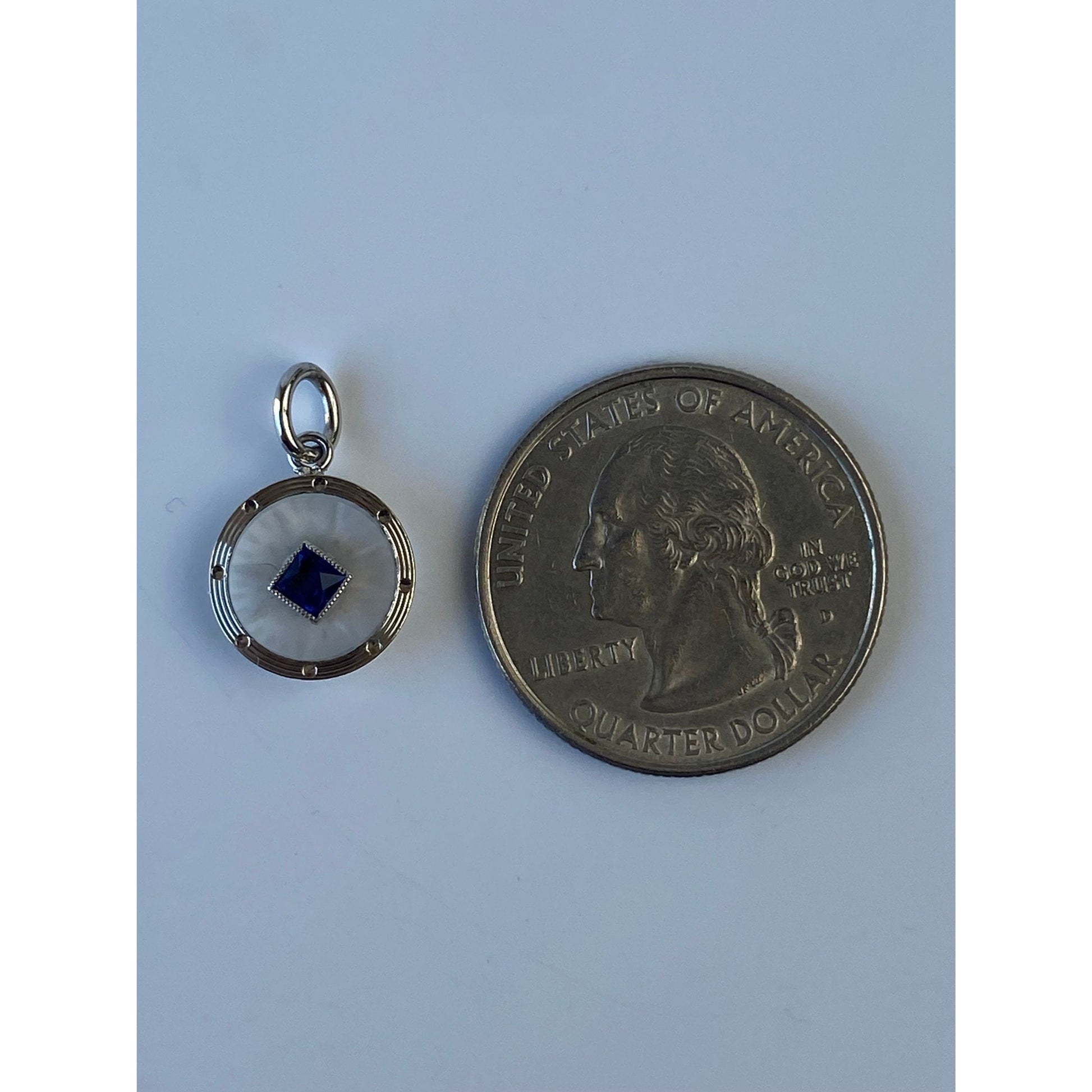 Vintage Solid Platinum Blue Spinel Camphor Glass Charm