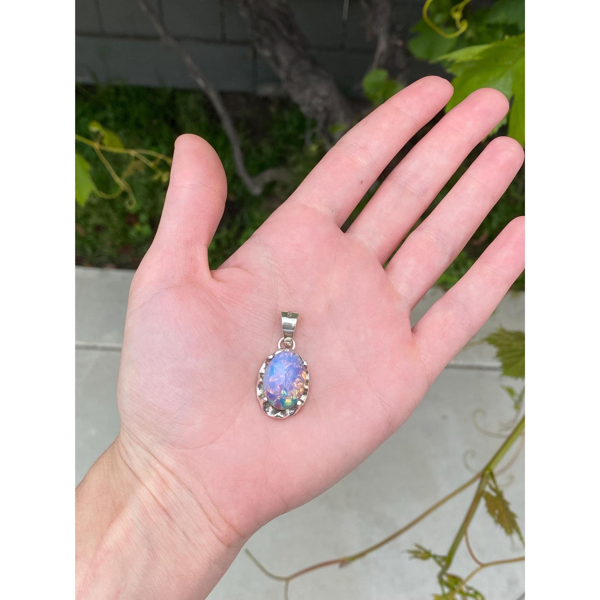 Vintage Solid Sterling Silver Foiled Cabochon Charm