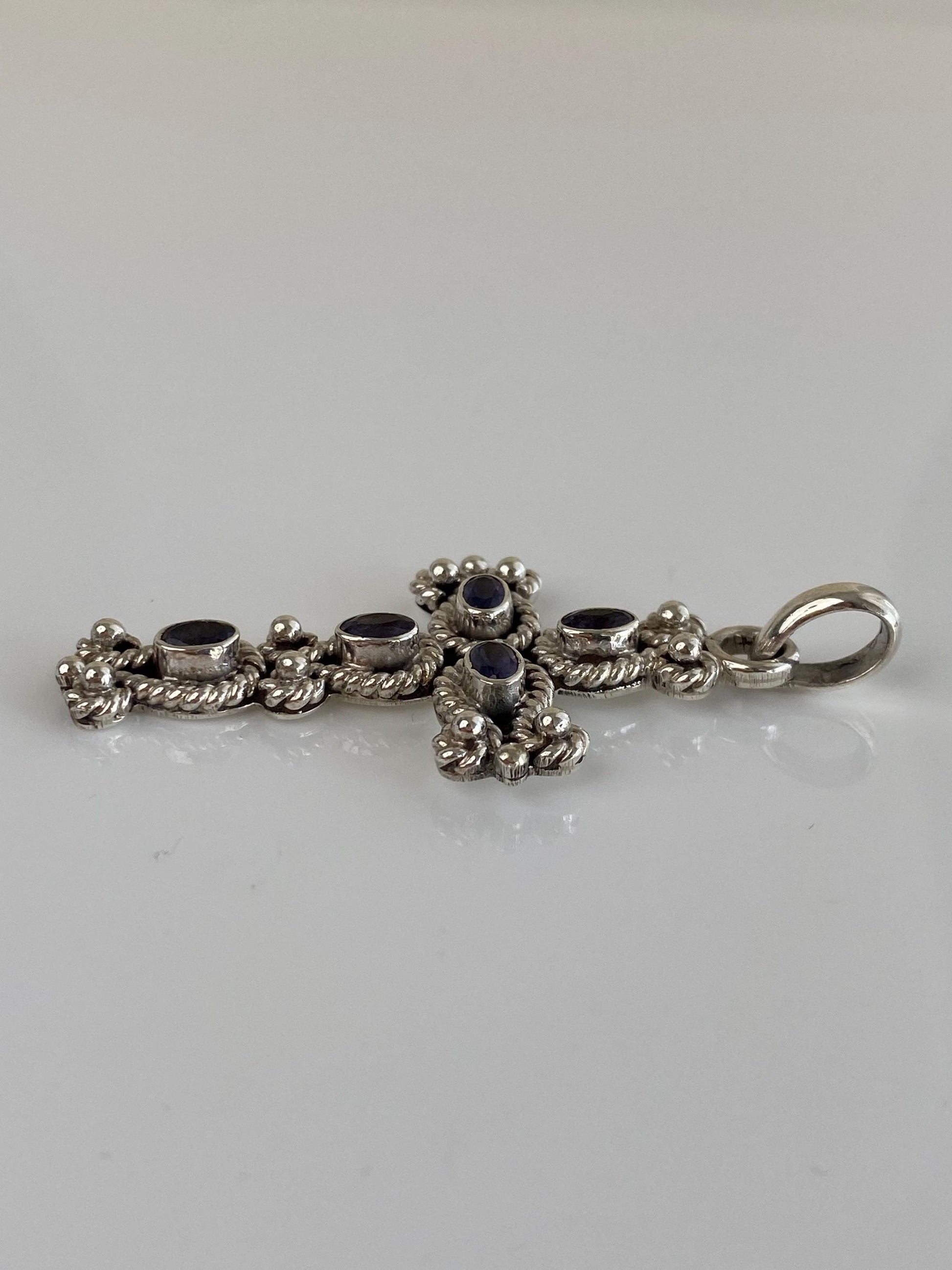 Vintage Solid Sterling Silver Purple Cubic Zirconia Cross Charm
