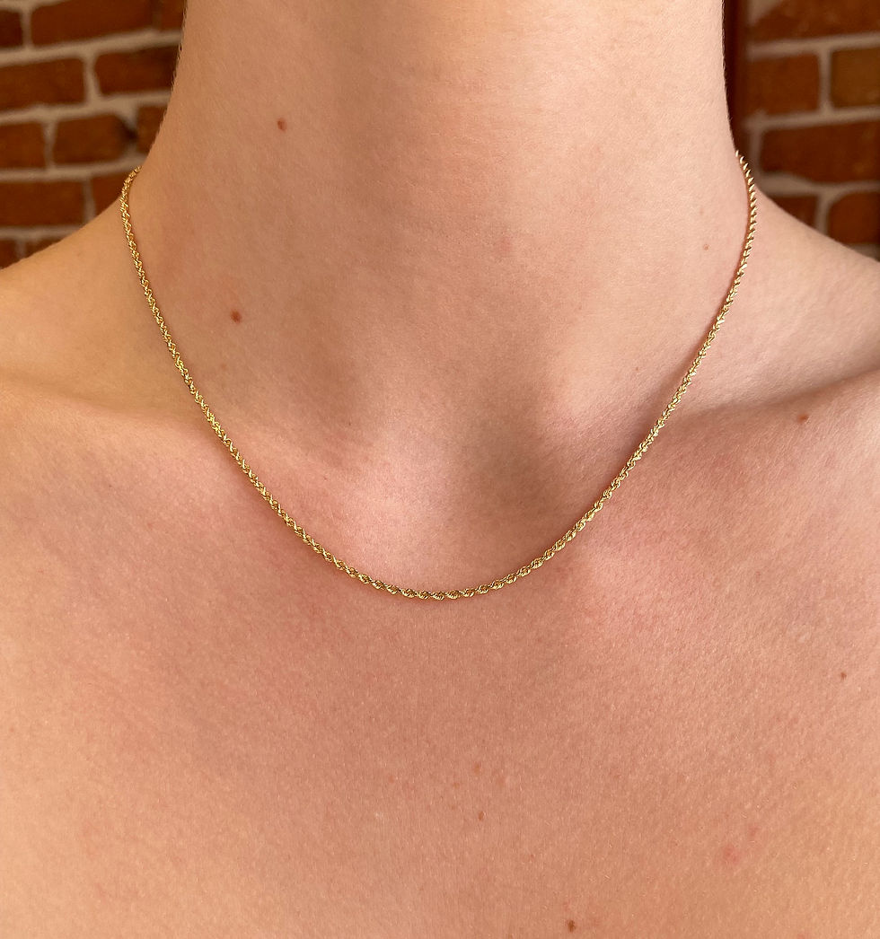 Vintage Solid 14k Yellow Gold Rope Chain Necklace - 16.25 inches