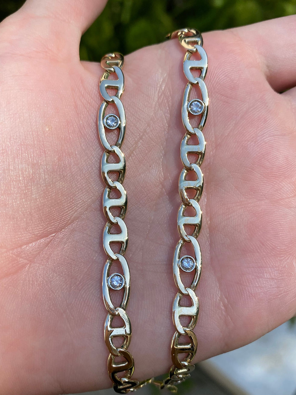 Vintage Solid 14k Yellow Gold Diamond Mariner Chain Anklet - 11.5 inches
